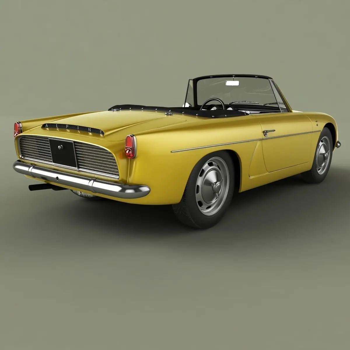 High detailed, correctly scaled model of 1961 Renault Alpine A108 Convertible. Originally created with 3ds Max 8. Rendered with V-Ray, files with standard materials are included. Unit system is set to metric units. Model is built to real-world scale. Geometry is Editable Poly. TurboSmooth is use separately to objects (82 of 118 named objects) with iterations 2 ( 823127 polys, 431977 vert.) Each file was checked before upload. Materials and textures are included (5 textures - jpg 1024X1024).