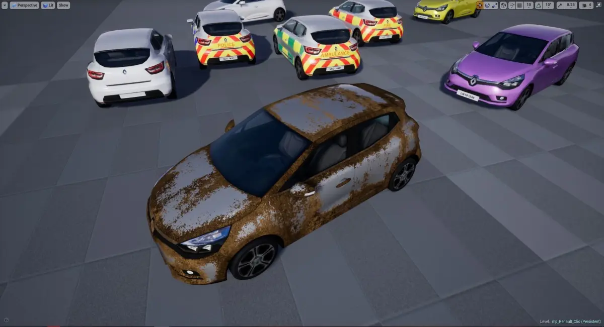 Renault Clio Hatchback 3D Model with simplified interior ready for rendering with vray or scanline renderer. Vray and scanline materials, textures. Included Unreal engine 4 project with game ready drivable car and static mesh model with 4 LODs. Vray, max scanline, fbx, UE4 formats.