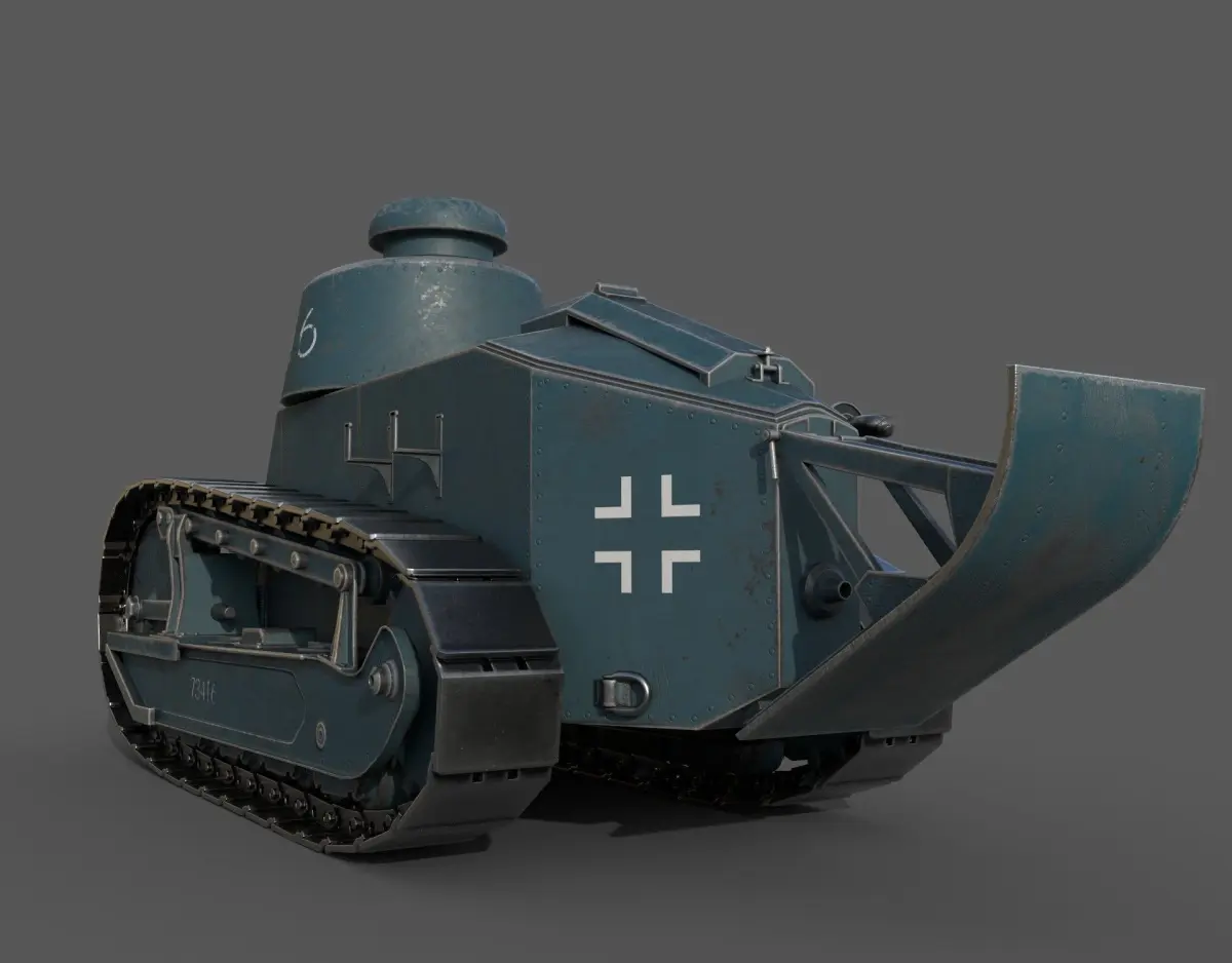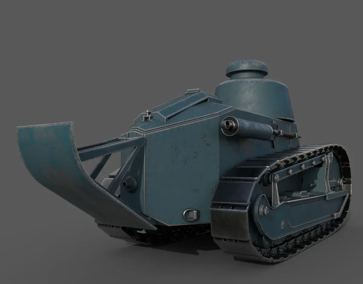 The Renault FT, frequently referred to in post-World War I literature as the FT-17 or FT17, was a French light tank that was among the most revolutionary and influential tank designs in history. The FT was the first production tank to have its armament within a fully rotating turret. The Renault FT's configuration – crew compartment at the front, engine compartment at the back, and main armament in a revolving turret – became and remains the standard tank layout. As such, some historians of armoured warfare have called the Renault FT the world's first modern tank. (Wikipedia)