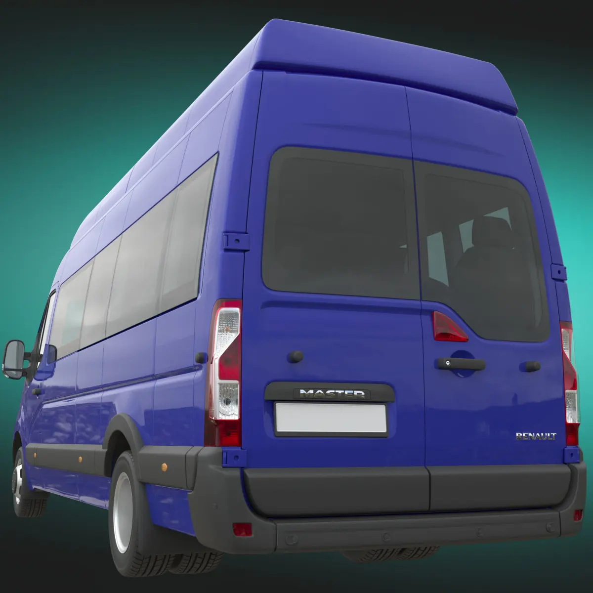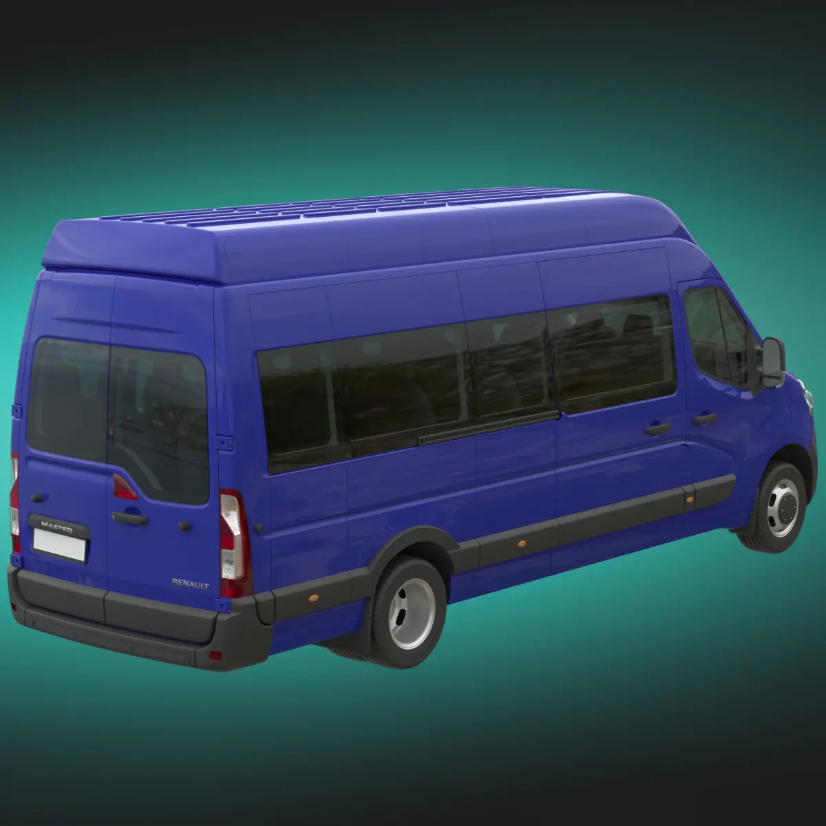 Renault Master of the third generation, restyling 2015 (2010-2020+).Minibus.4 vehicle lengths: compact, standard, long and extra long. (L1,L2,L3,L4)3 roof heights: standard, high and extra high. (H1,H2,H3)Front and rear wheel drive (FWD,RWD)