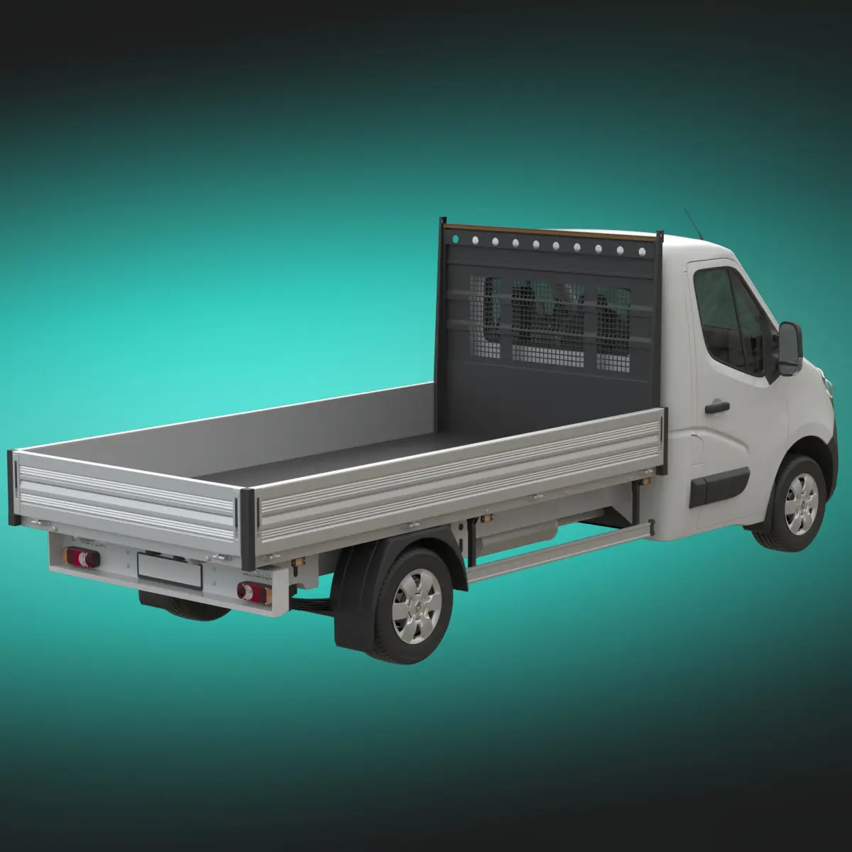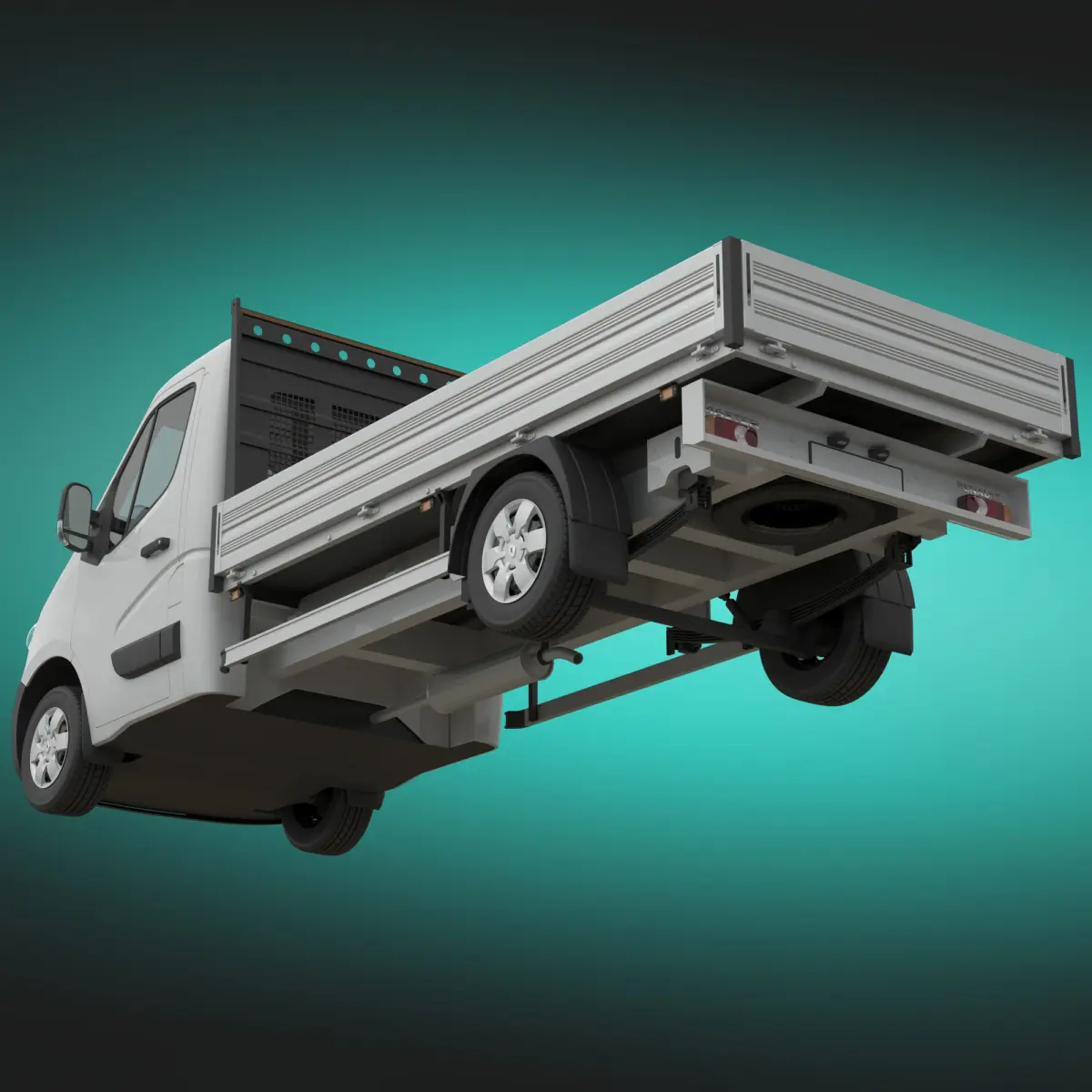 Renault Master of the third generation, restyling 2015 (2010-2020+).Commercial Truck Chassis Cab. FlatbedLight commercial vehicle (LCV) .4 vehicle lengths: compact, standard, long and extra long.3 roof heights: standard, high and extra high.Front and rear wheel drive