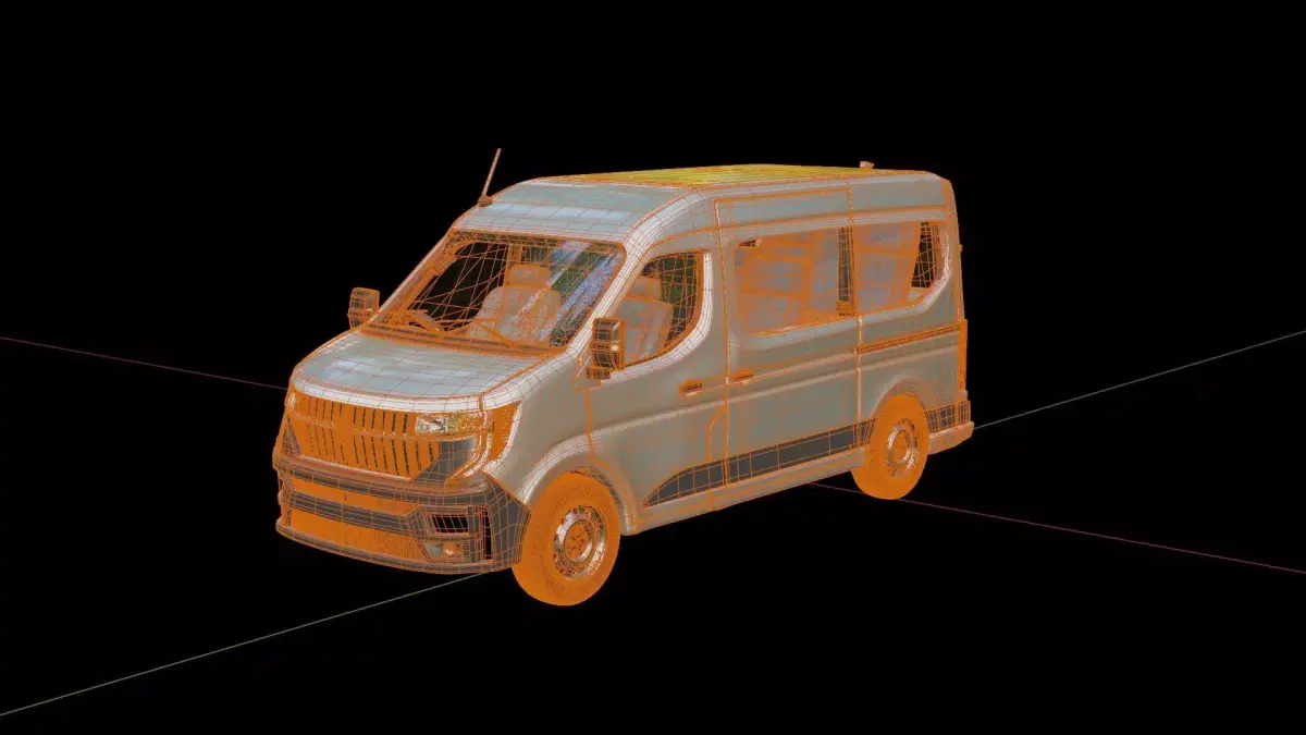 3D model of the Renault Master Passenger VanCreated in Blender and already rigged.The mesh of the model in the Blender file format is mainly quads.