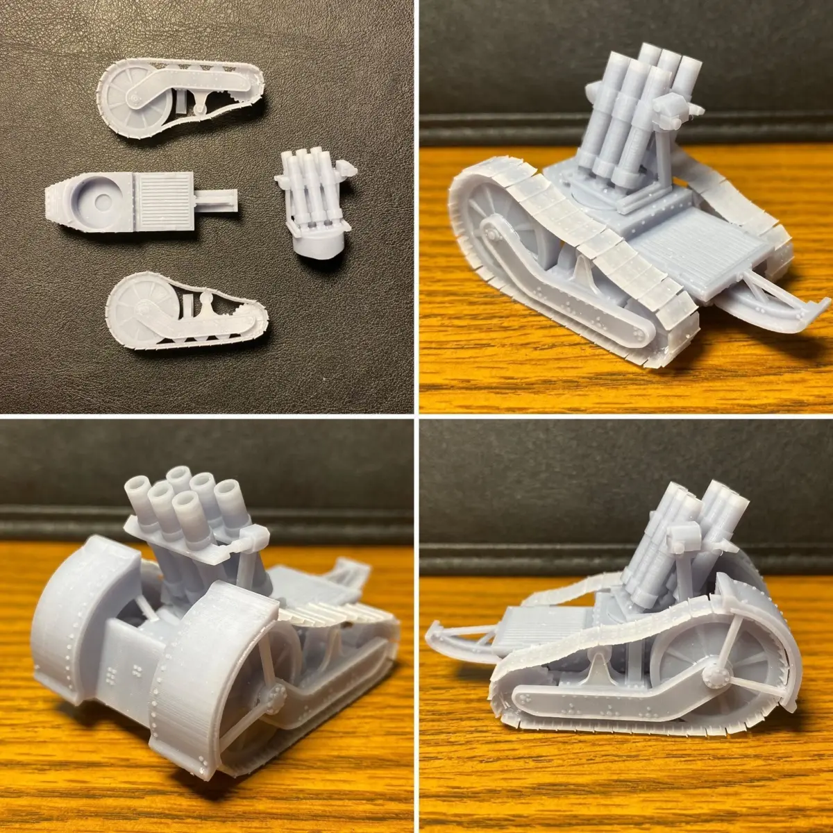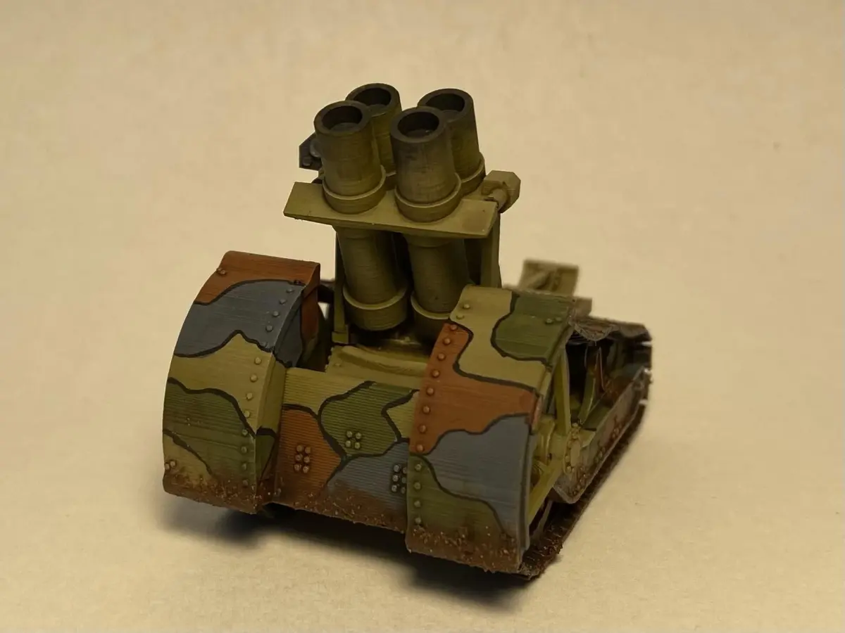 Ammunition and accessories are scaled for the smaller, six-tube mortar. Scale to 150% for the 4-tube heavy mortar.