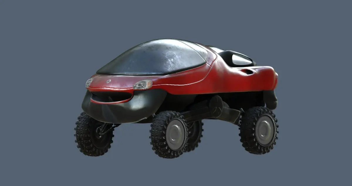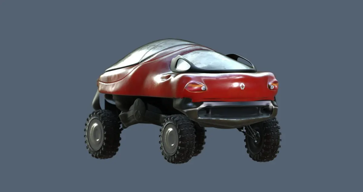 The Renault Racoon is a concept car created by Renault in1992.It used a twin-turbocharged V6 engine, a manual transmission and an all wheel drive system. This vehicle was aquatic-capable.The Racoon could be raised upwards to provide additional ground clearance. The construction of its suspension meant this was achieved with a levered effect. This model has three versions, low poly, med and high. Textured with 3D-Coat Includes: Nomal map, difuse, metalnes, ao and rough map