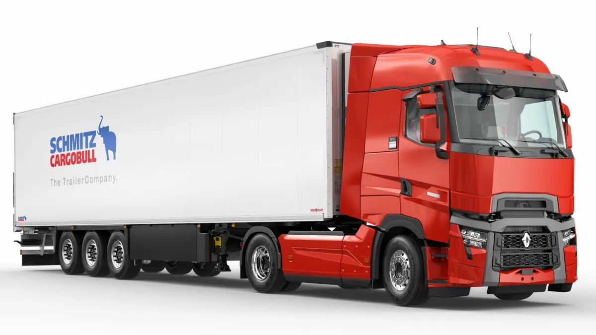 Realistic 3d model of Renault T 2021 With Semitrailer SCHMITZ SKO 24 FP60