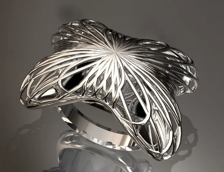 Anello Modello F in Oro bianco Rendering