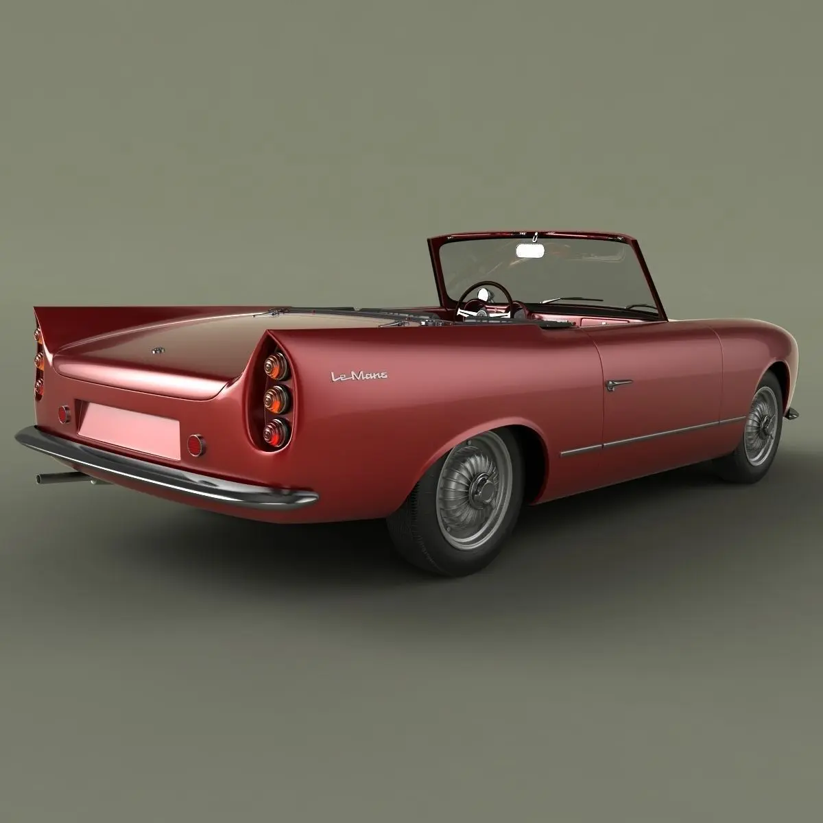 High detailed, correctly scaled model of Rene Bonnet Le Mans 1962. Originally created with 3ds Max 8. Rendered with V-Ray, files with standard materials are included. Unit system is set to metric units. Model is built to real-world scale. Geometry is Editable Poly. TurboSmooth is use separately to objects (88 of 120 named objects) with iterations 2 (732227 polys, 385808 vert.) Each file was checked before upload. Materials and textures are included (8 textures - jpg 1024X1024).