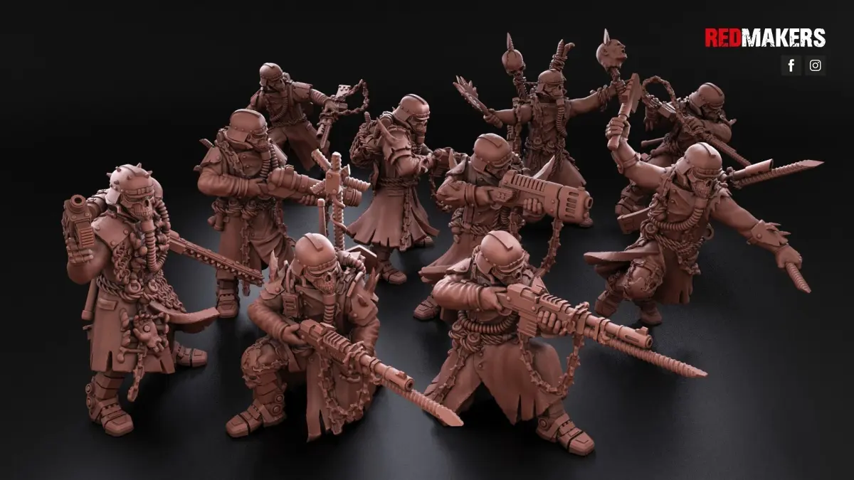 This squad of Heretics consists of 8 warriors, a radio operator and a sergeant. Each warrior has several weapon options.