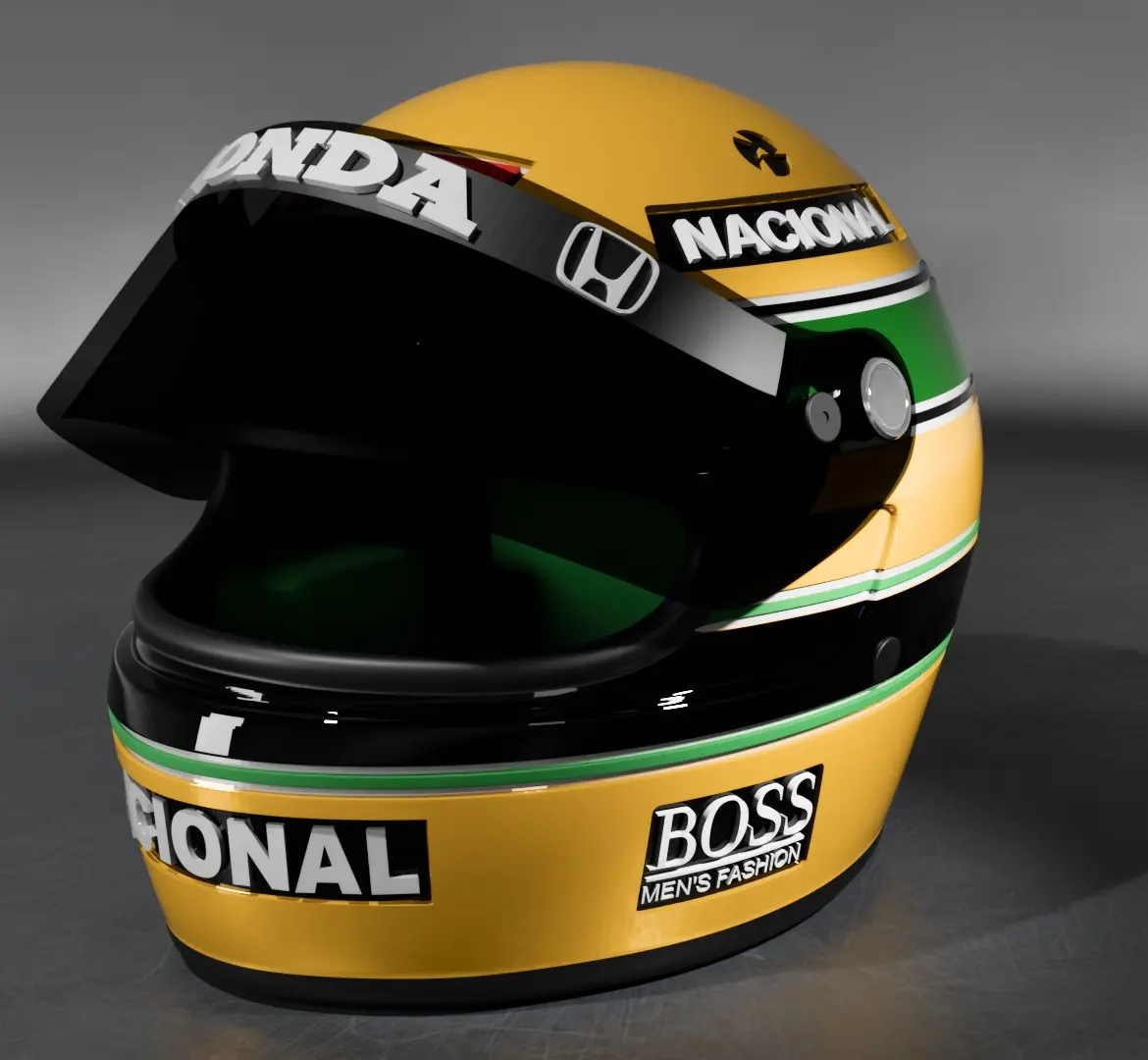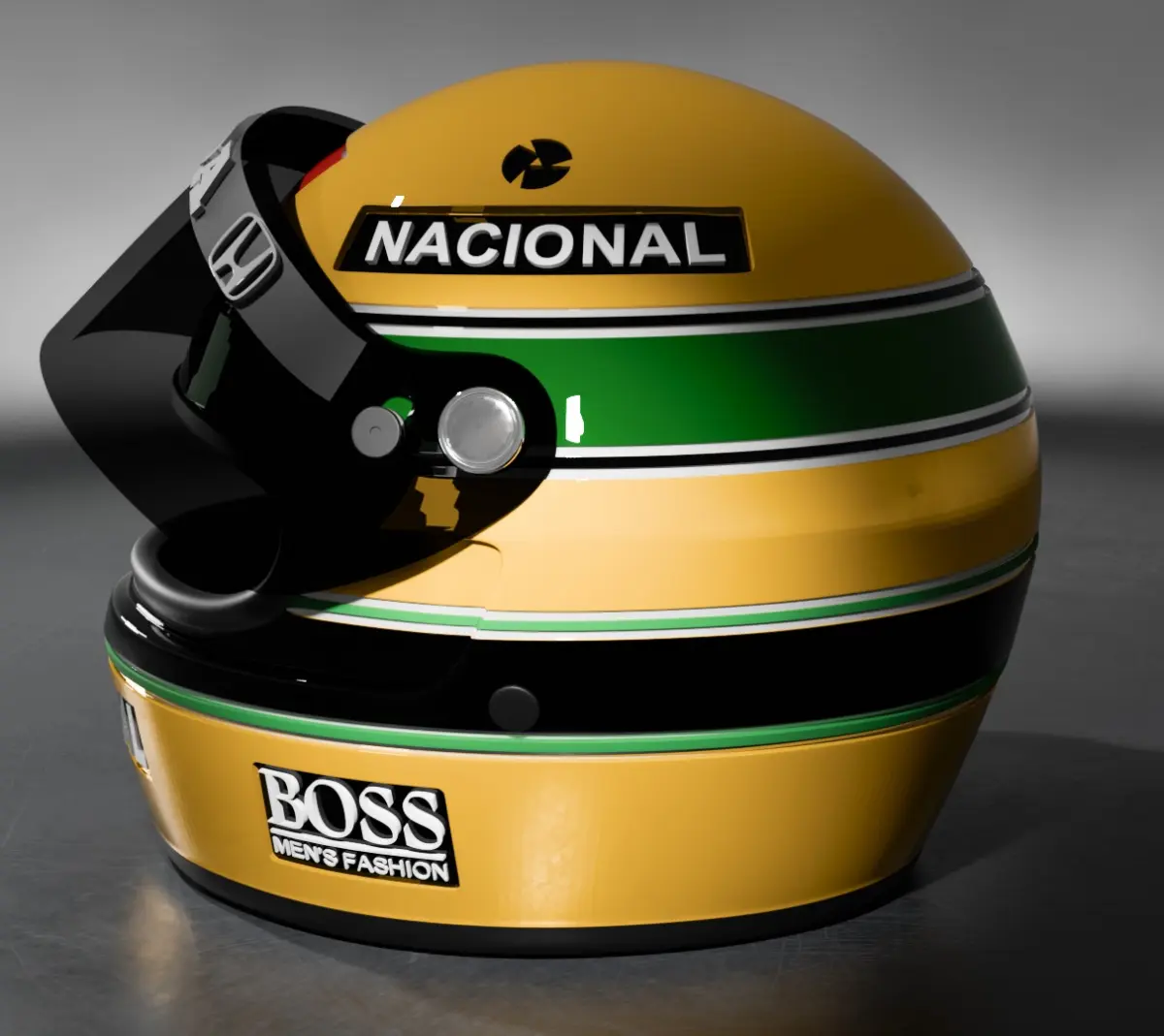 Replica of the helmet of our Brazilian hero from Formula 1 races in the 80s and 90s. His knowledge and driving acumen made everyone stop everything they were doing to watch the race. Unfortunately, he left us very early in 1994. But his legacy remained and is still remembered with great affection by everyone who knew him, he continues to be our hero.
