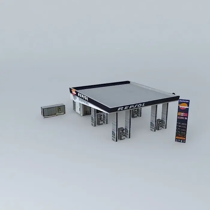 This 3D model was originally created with Sketchup 8 and then converted to all other 3D formats. Native format is .skp 3dsmax scene is 3ds Max 2016 version, rendered with Vray 3.00 Repsol YPF gas station across the street from the Alamo and Ceballos Architect