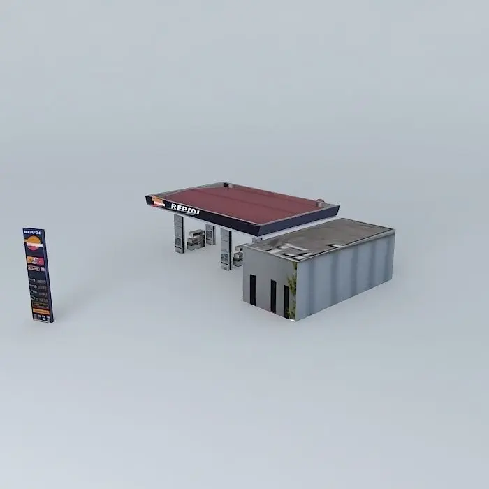This 3D model was originally created with Sketchup 8 and then converted to all other 3D formats. Native format is .skp 3dsmax scene is 3ds Max 2016 version, rendered with Vray 3.00 Repsol YPF gas station across the street from the Tejeras, 26007 Logroño