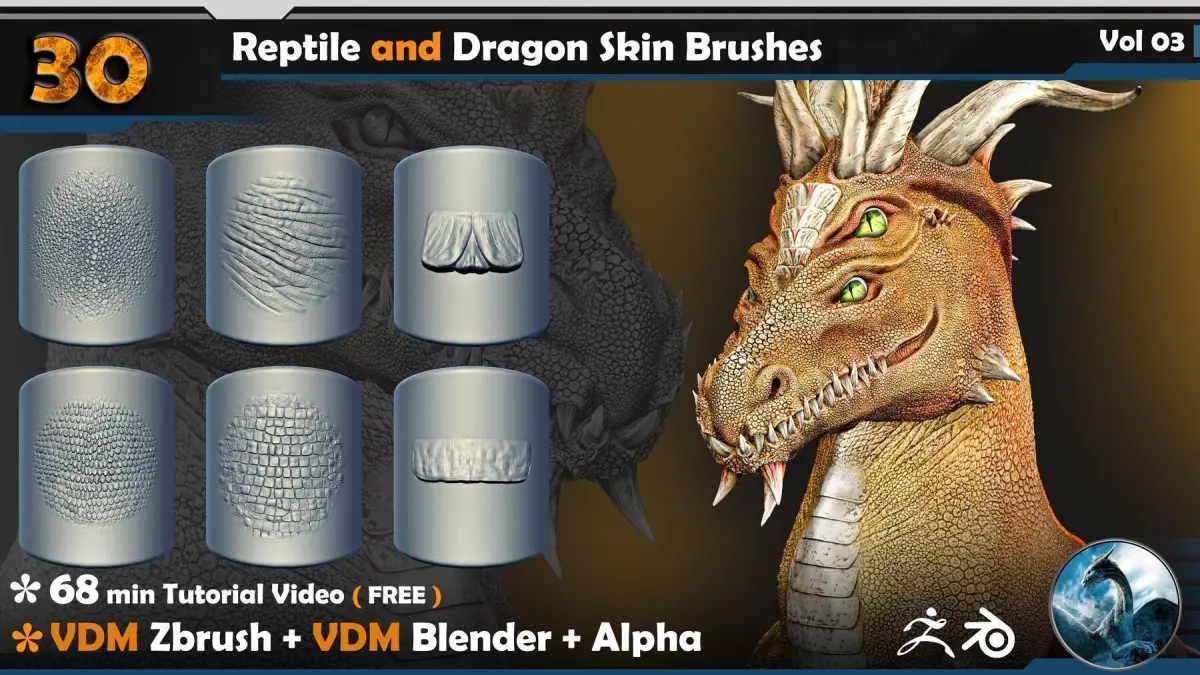 This Product include ** 30 Reptile and Dragon Skin Brushes Vol 03**This product enables you to complete any creature or animal model, fill all the body levels of the characters, for example you can watch the preview video and enjoy.I tried to make an optimal and light product, I hope it will make your cartoon faster and more beautaiful.