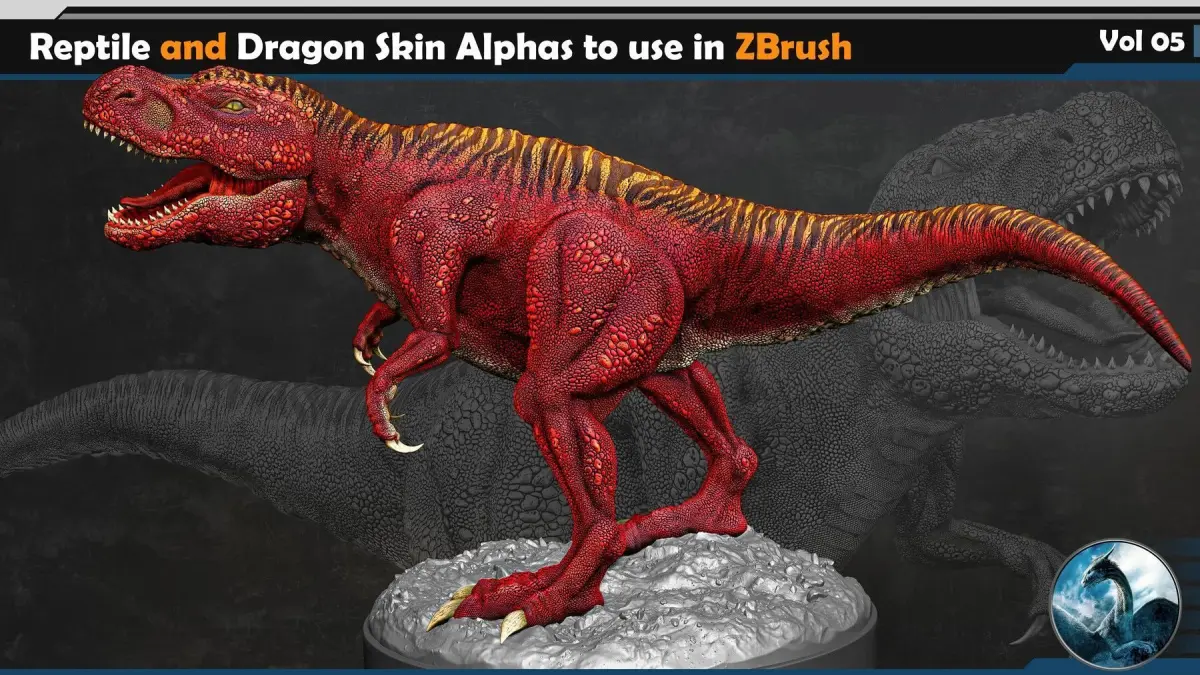 VDM ZBrushVDM BlenderVDM Blender_ Single TIF Alphas (4K)Catalog98 min Sculpting & painting Tyrannosaurus rex with Zbrush