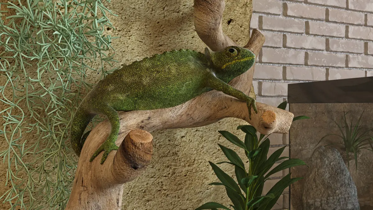 good detailed gecko lizard and chameleon with their cages terrarium for decoration
