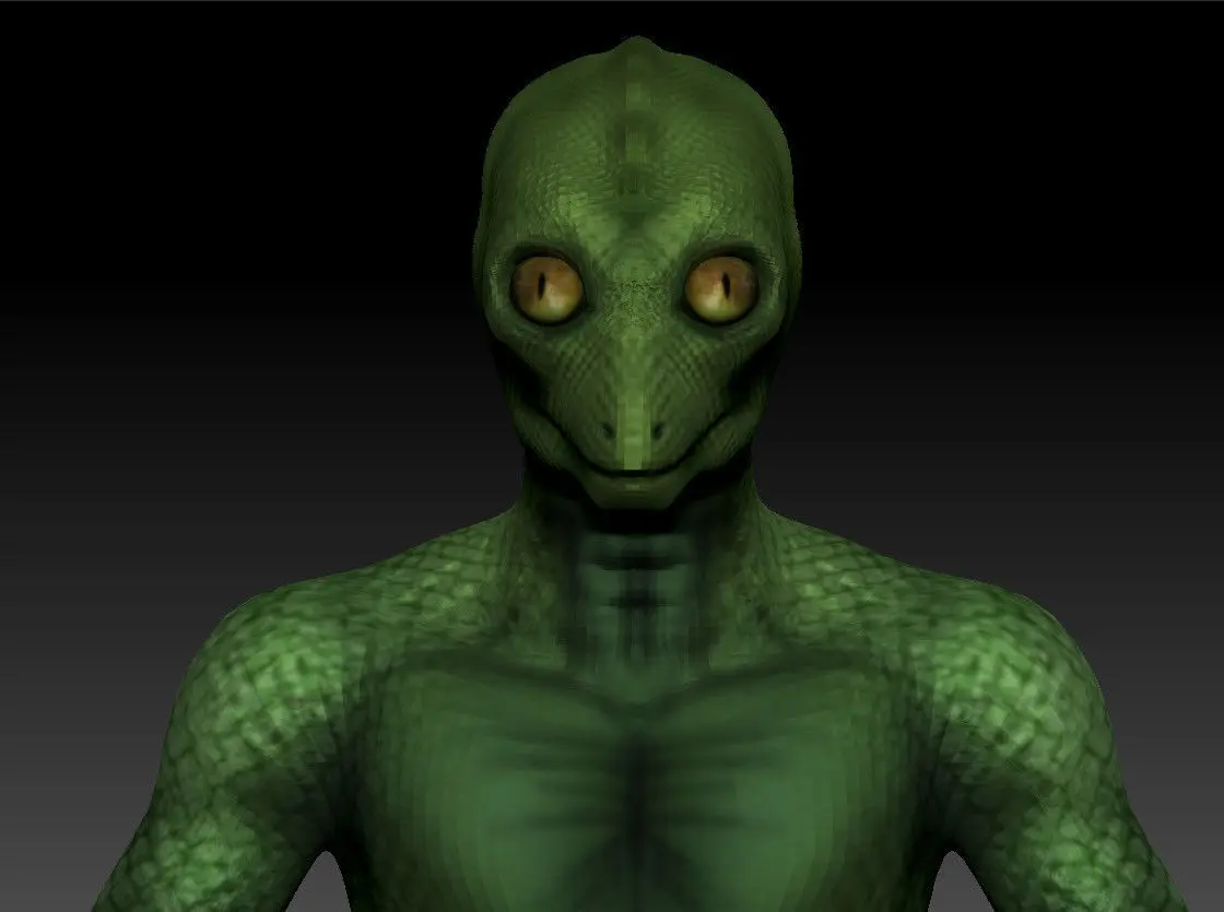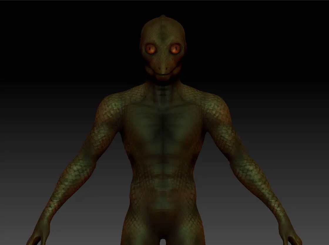 A 3d model of a classic reptilian alienrealized with Zbrush form the identikit and descriptions of mythologies ,paranormal stories,ufology,and abducted people in the last 30 years.