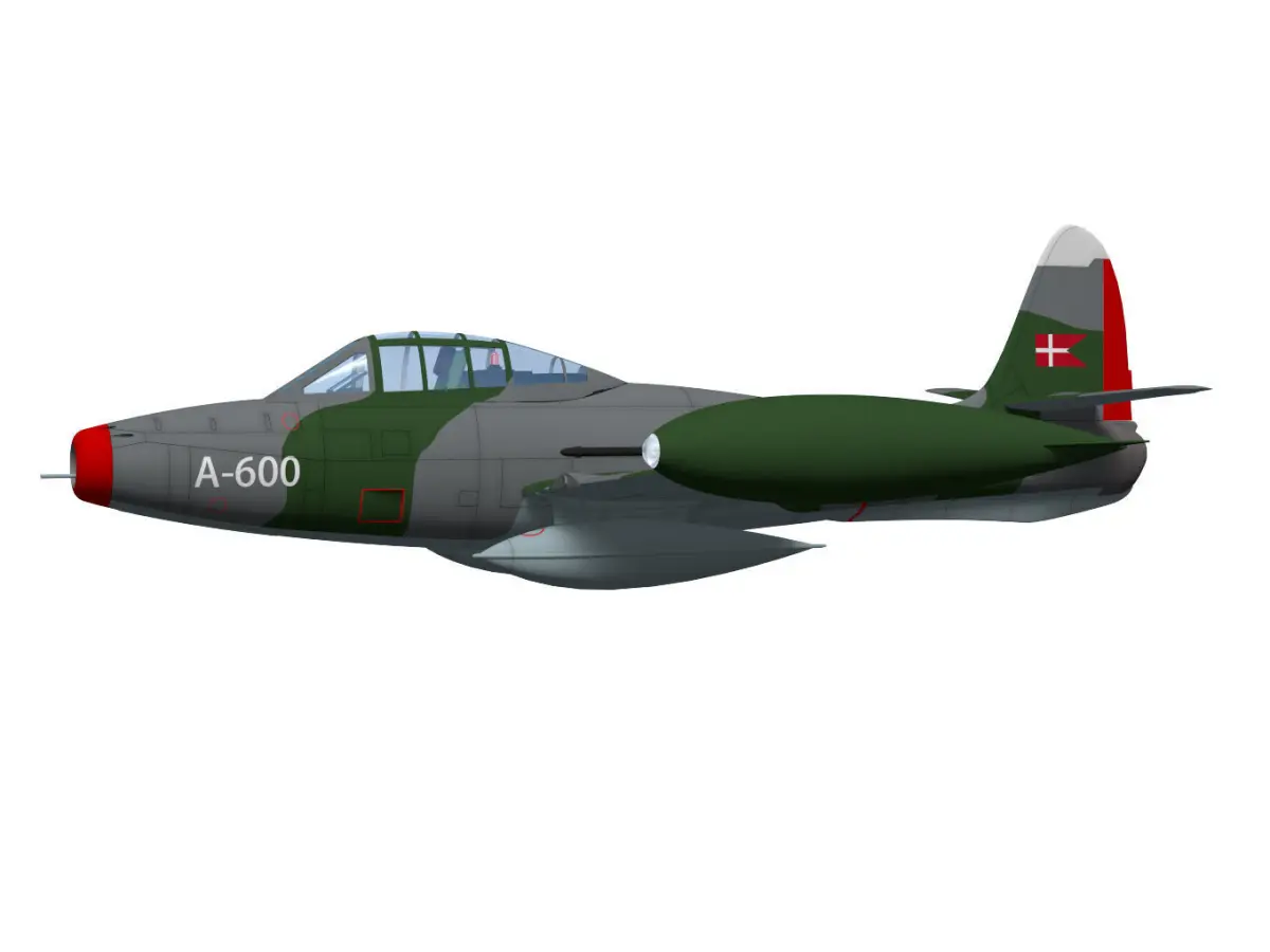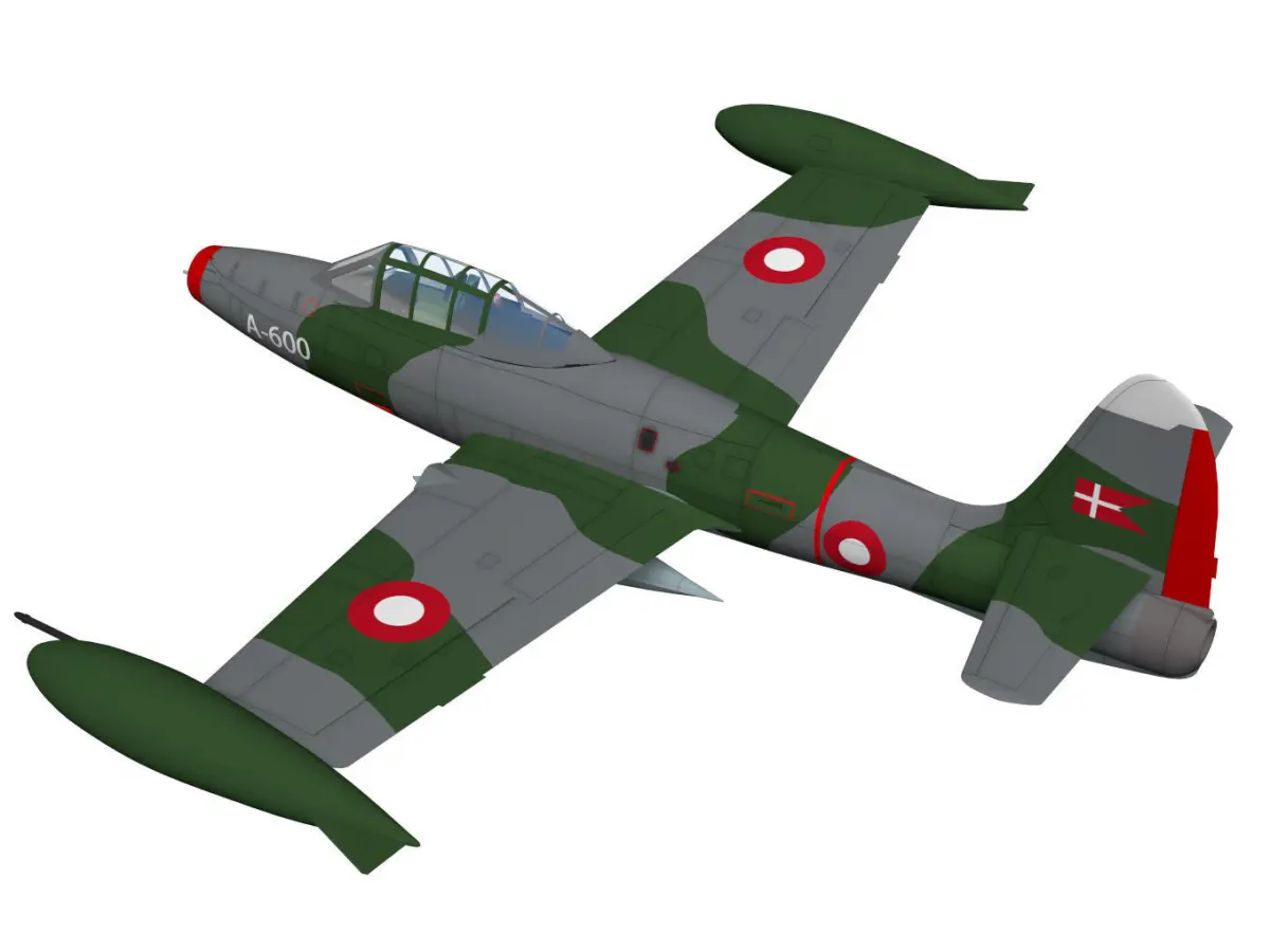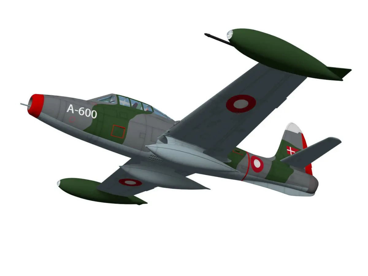 This American jet fighter was used in many countries from the 1950s onward.Markings of the Danish Air Force.The model's Landing Gear is divided into parts for flight and landing conditions.Modeling of the cockpit is simple.The texture of the original data may have changed due to export.