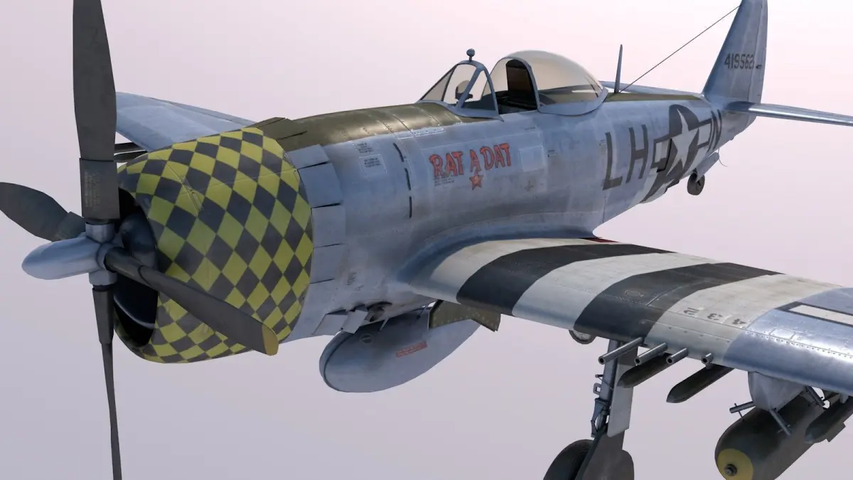 The Republic P-47 Thunderbolt was a World War II-era fighter aircraft produced by the American aerospace company Republic Aviation from 1941 through 1945. Its primary armament was eight .50-caliber machine guns, and in the fighter-bomber ground-attack role it could carry five-inch rockets or a bomb load of 2,500 lb (1,100 kg). When fully loaded, the P-47 weighed up to eight tons, making it one of the heaviest fighters of the war.