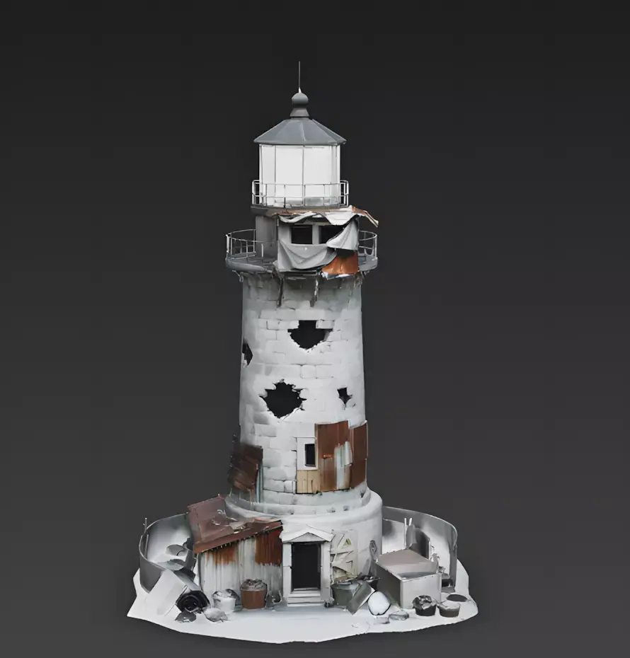 The Overall Concept This asset is a ruined stone lighthouse that has been turned into a survivor's fortress. It fits perfectly into post-apocalyptic games where characters have to scavenge materials to build a safe home.