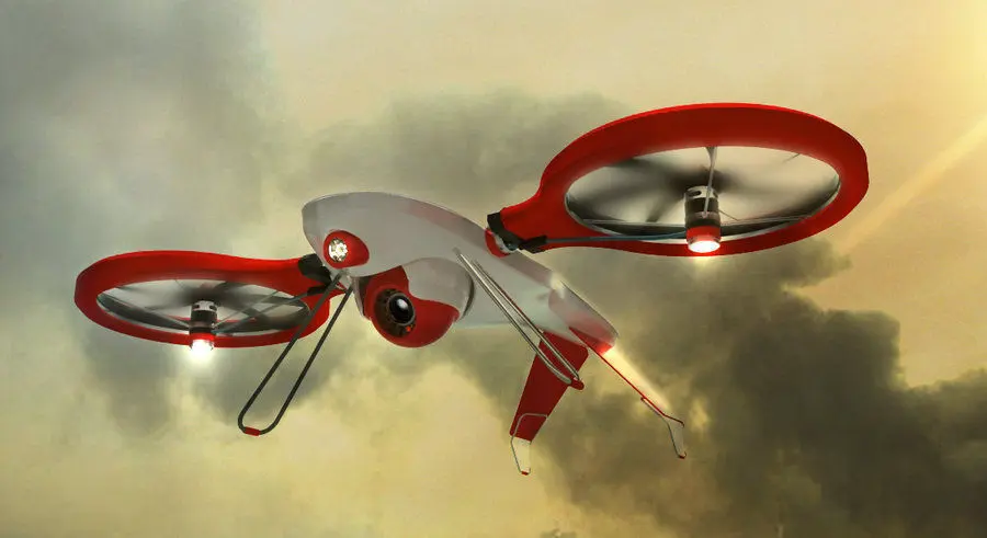 This is a drone with camera and light for helping in case of disaster by searching for people. It is modeled in rhinoceros, rendered in 3dstudio with vray.