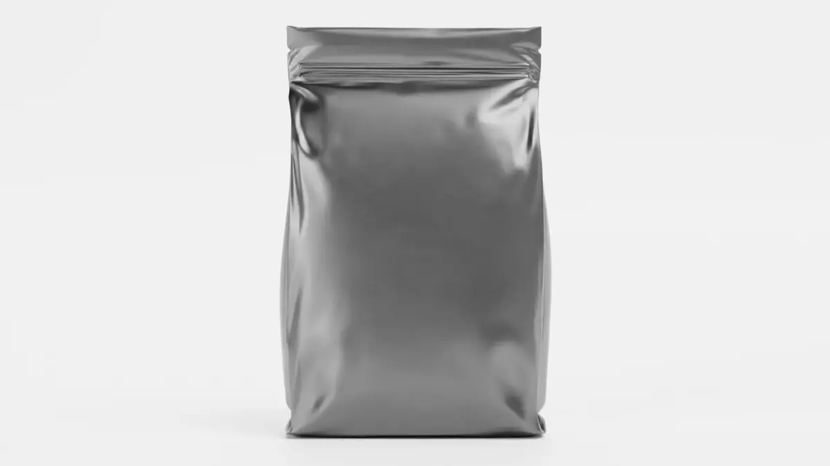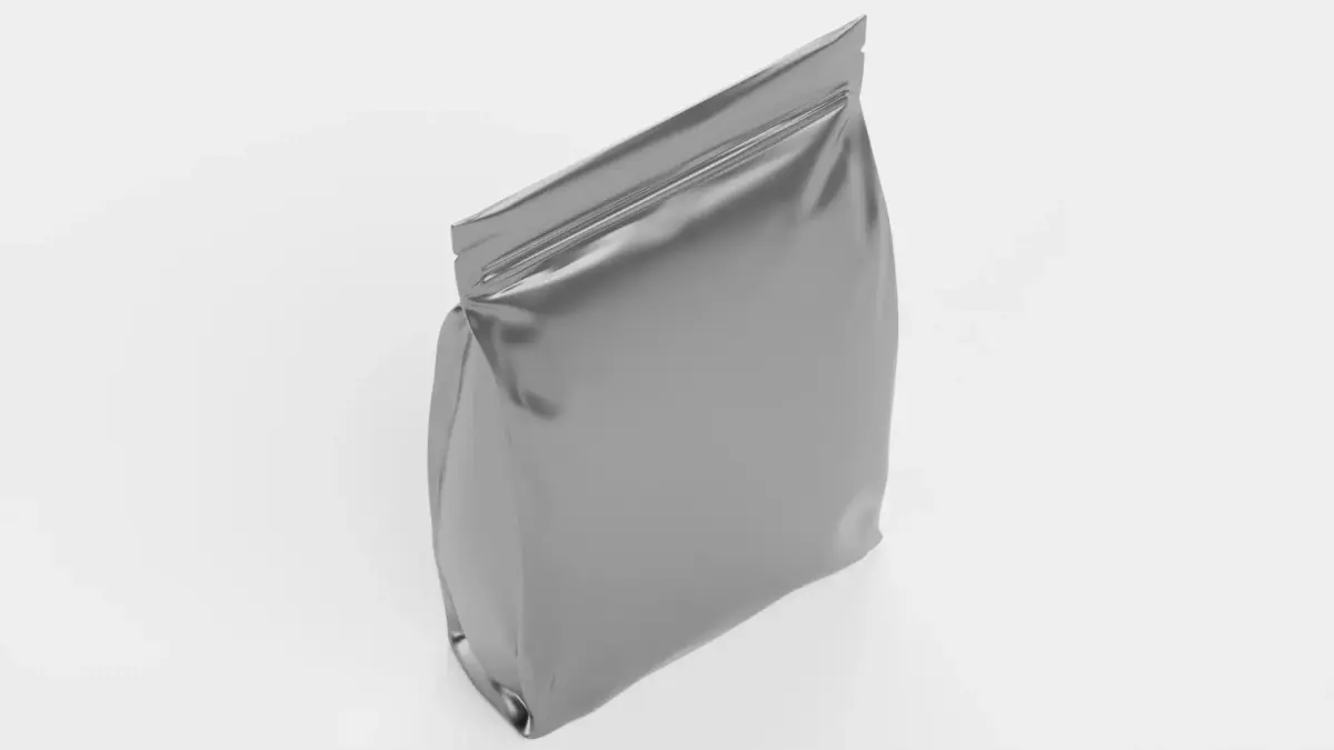 - Detailed stand-up pouch geometry with realistic zip-lock-like sealing system
