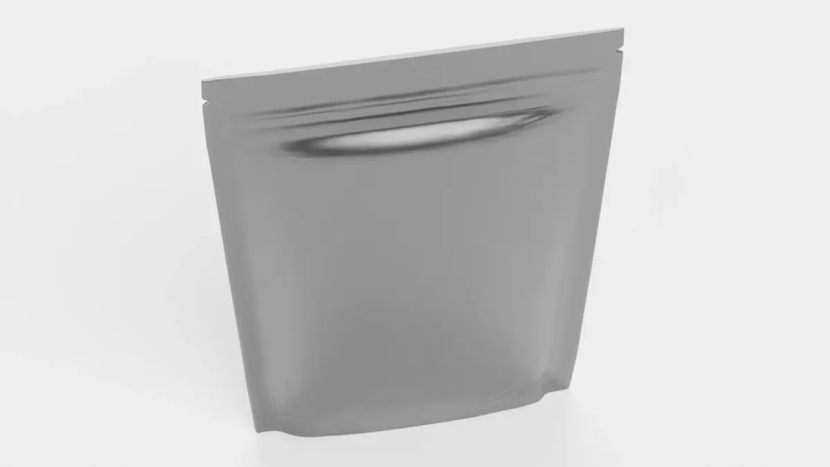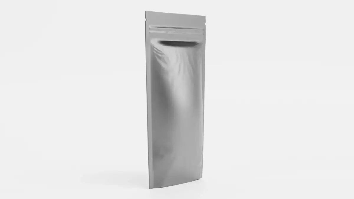 - Detailed stand-up pouch geometry with realistic zip-lock-like sealing system
