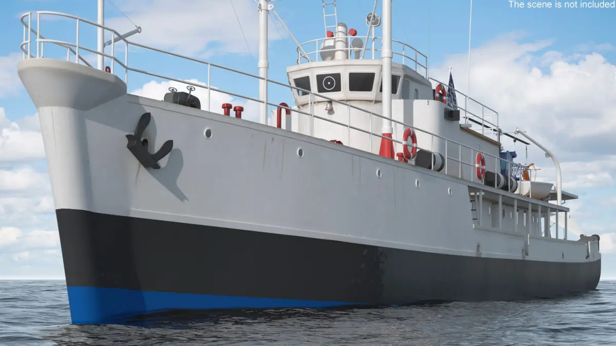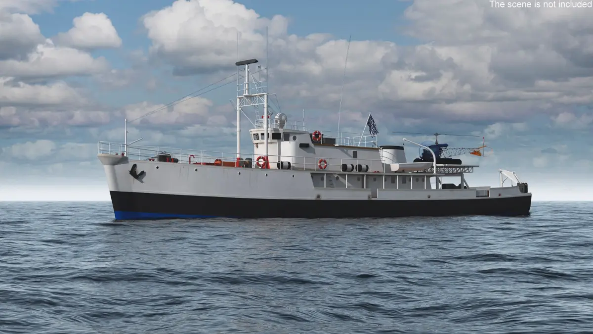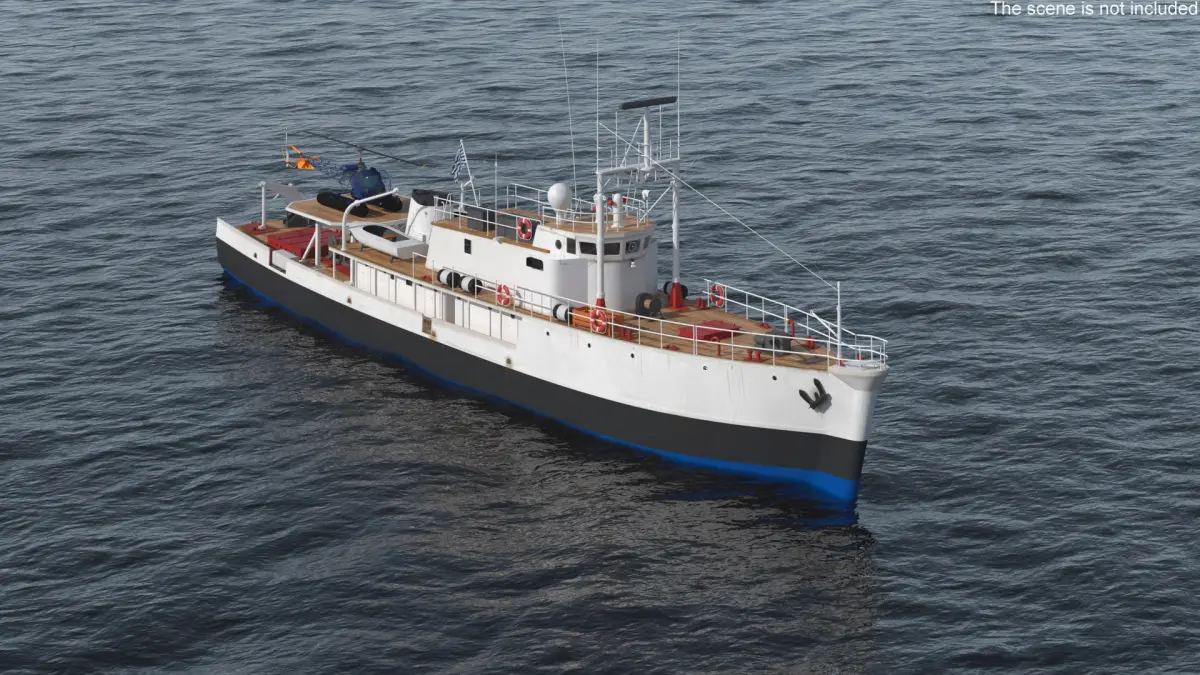 Research Vessel with Helicopter is a high quality, photo real 3d model that will enhance detail and realism to any of your rendering projects. The model has a fully textured, detailed design that allows for close-up renders, and was originally modeled in 3ds Max 2020 and rendered with V-Ray. Renders have no postprocessing!