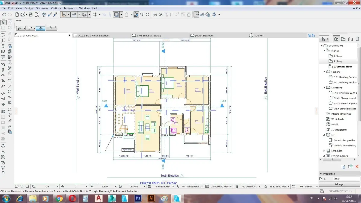 I work in a small Residence with ARCHICAD 22 with full Floors, Elevations, Sections & 3D in Imperial system U.S