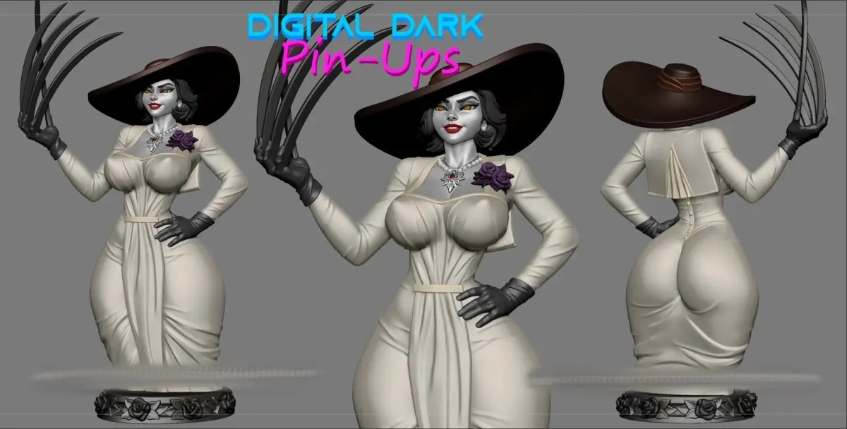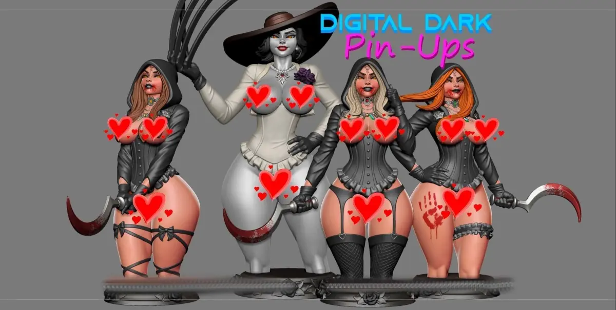 The diorama consists of the bust of Alcina, Bela, Cassandra and Daniela, the vampire girls from Resident Evil Village. All of them with NSFW version and also miniature with NSFW version.