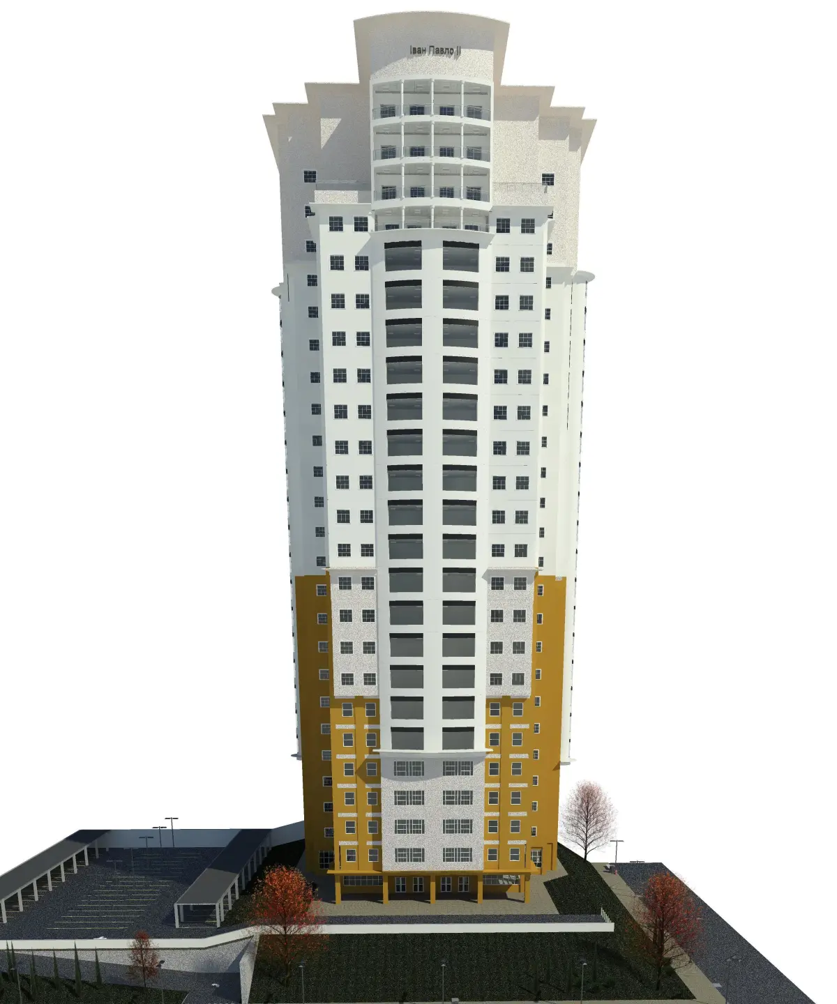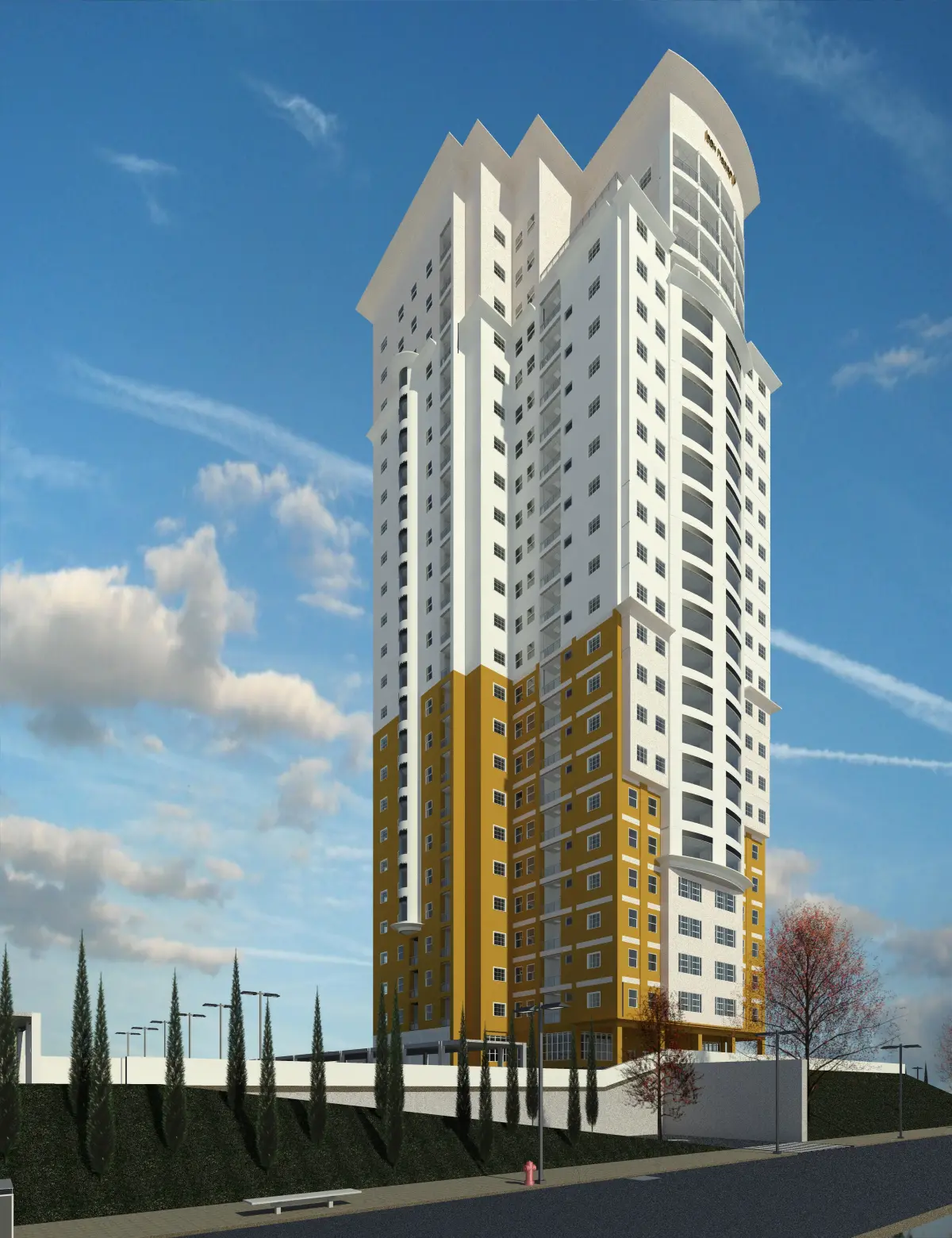 Residential building with 23 floors and a roof terrace.