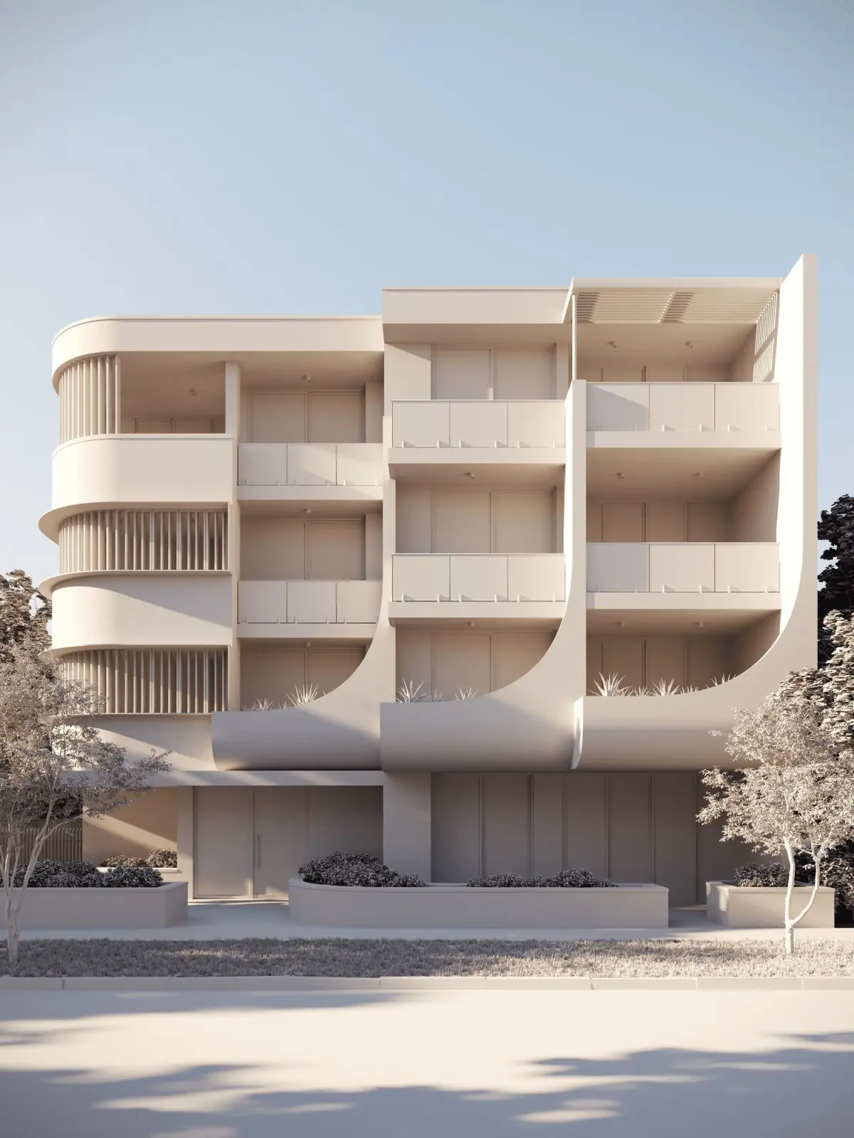 - Curved facade elements that create a smooth and harmonious effect.
