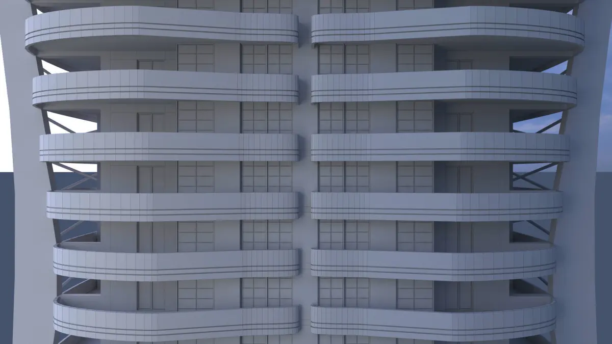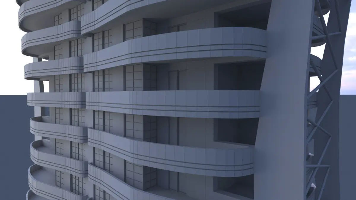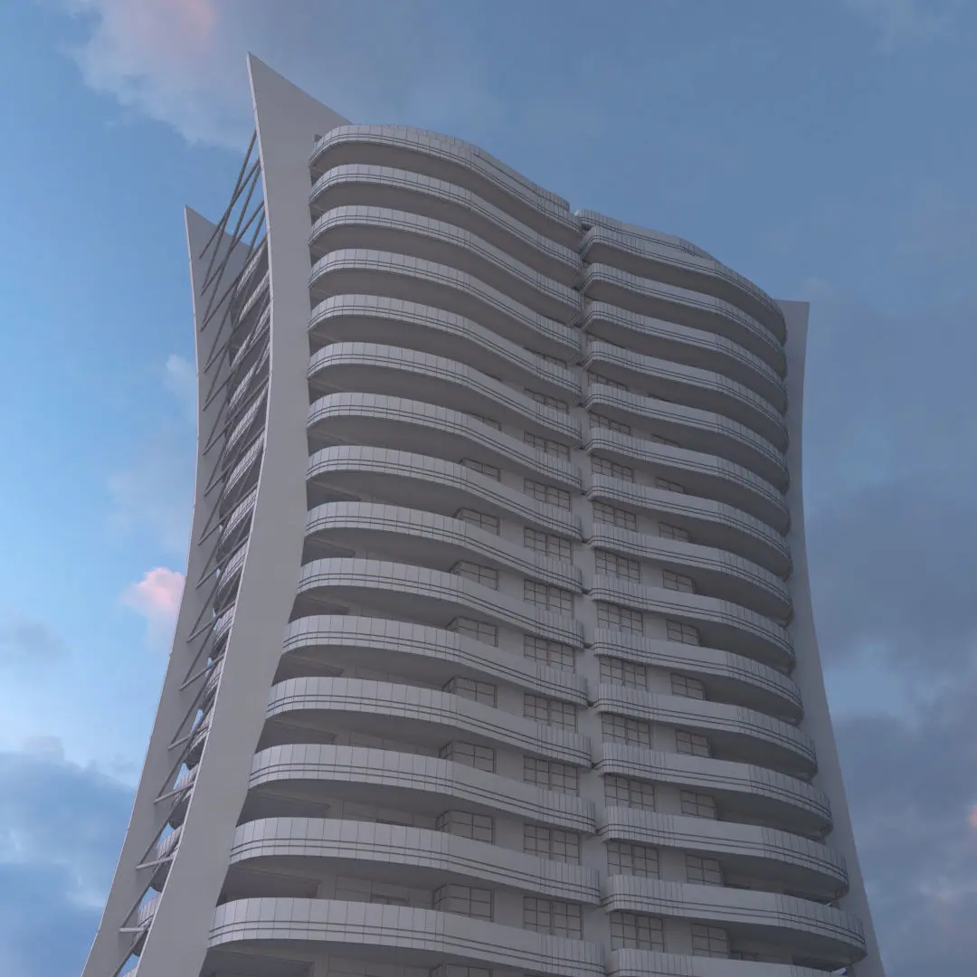 Low poly 3d model of a twenty-storey residential building.