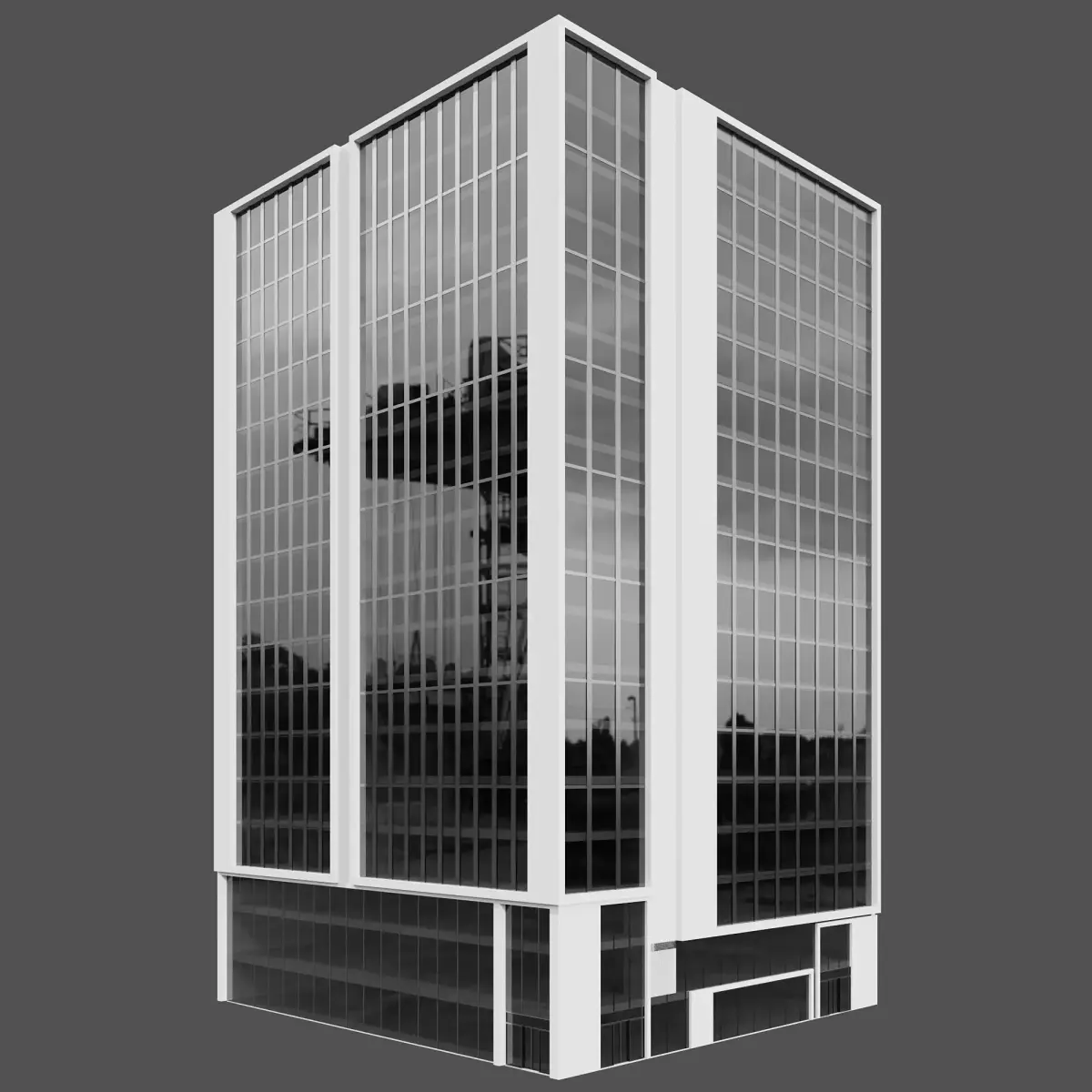 High-quality 3D model of a modern office building with glass façade and clean architectural lines. Ideal for use in urban visualization, architectural projects, and cityscape renderings. The model features detailed exterior design with realistic proportions and materials, making it perfect for both close-up shots and background placement.