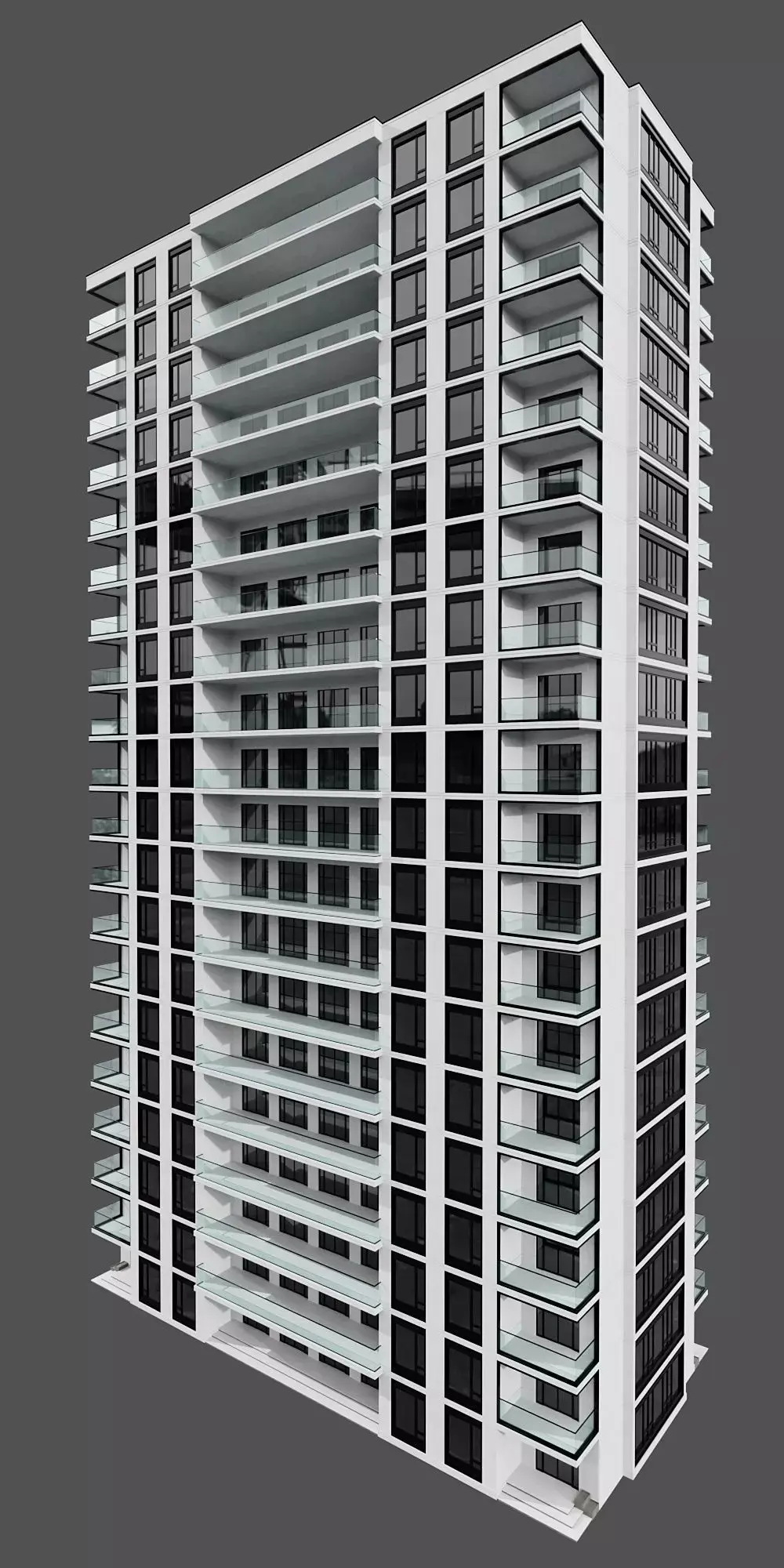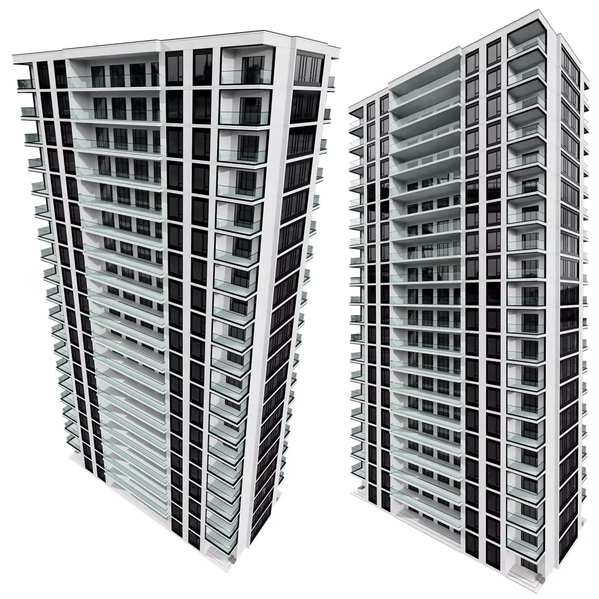 High-quality modern residential tower 3D model with glass balconies and contemporary façade design. Each floor is individually grouped, allowing users to easily adjust the number of floors based on their project requirements.Perfect for architectural visualization, residential urban renders, and modern apartment complex scenes. This model features clean geometry, optimized topology, and is ready for V-Ray and Corona Renderer.Model includes: modular floor structure, glass railings, balcony details, and realistic materials.