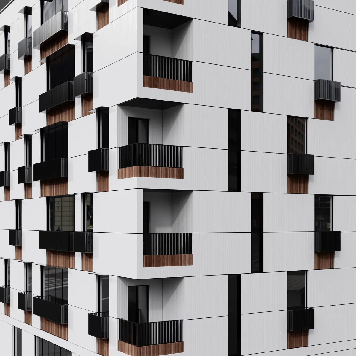 the building includes detailed railing,window frames and...
