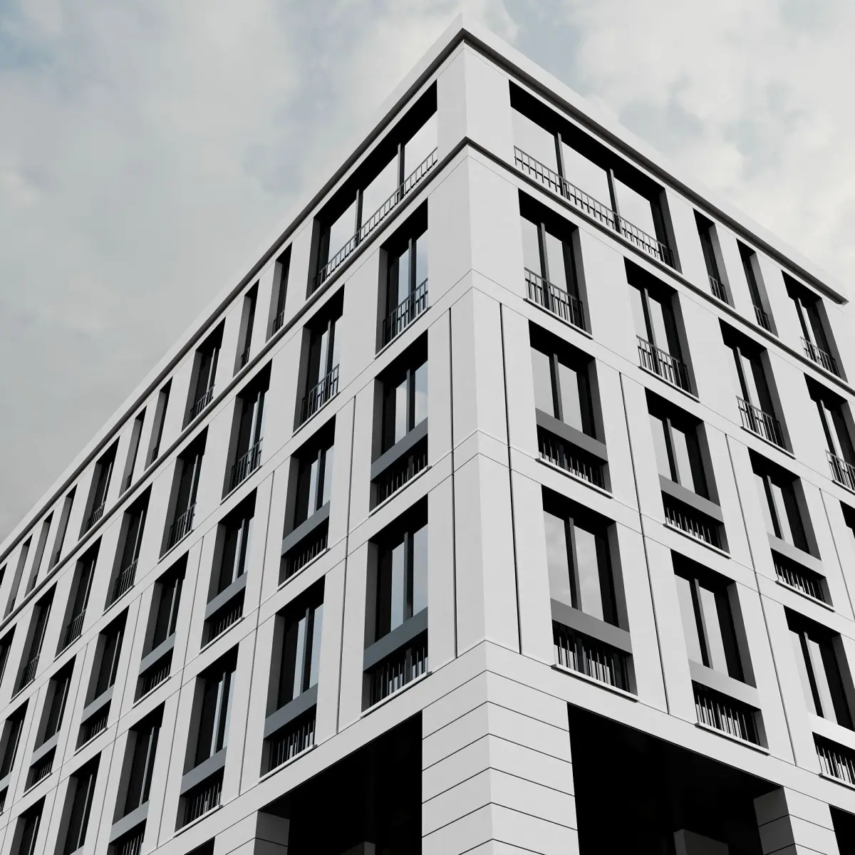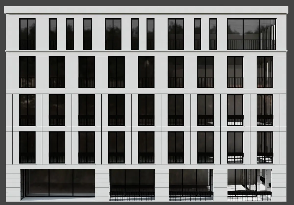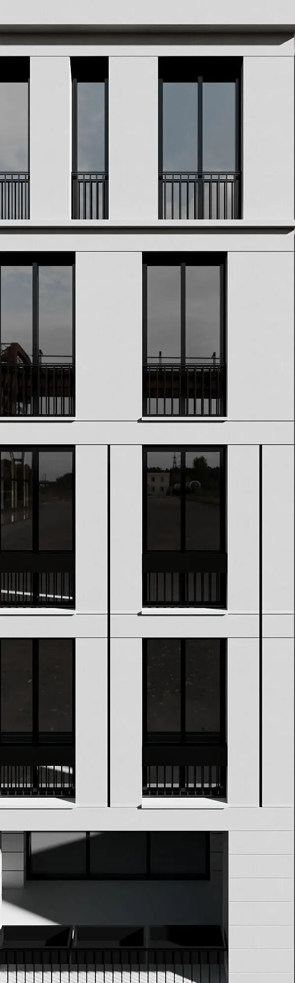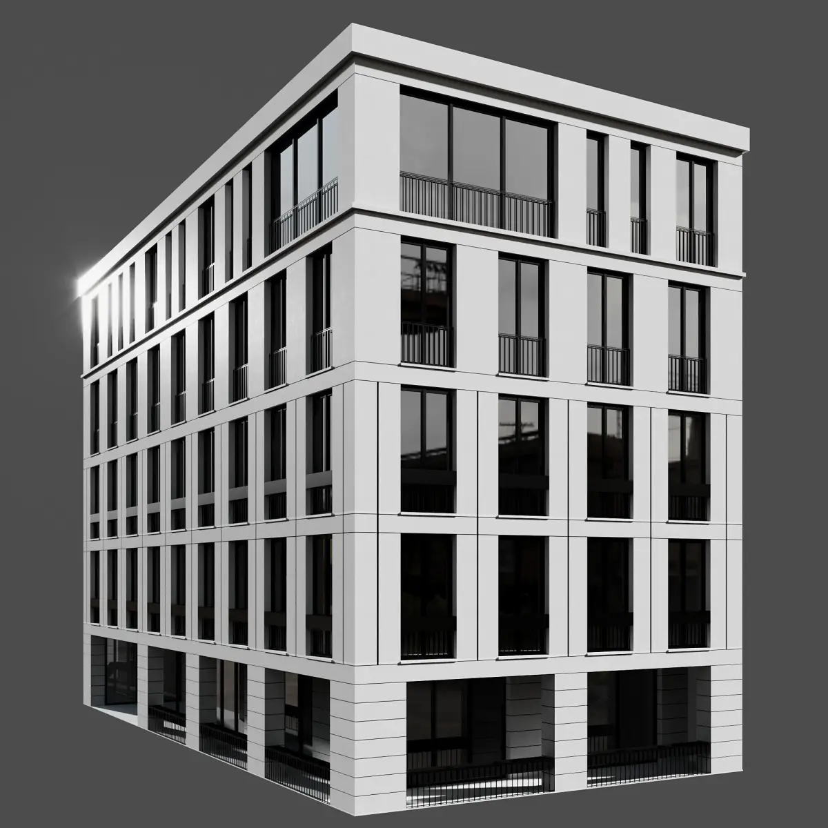 the building includes detailed railing,window frames and...