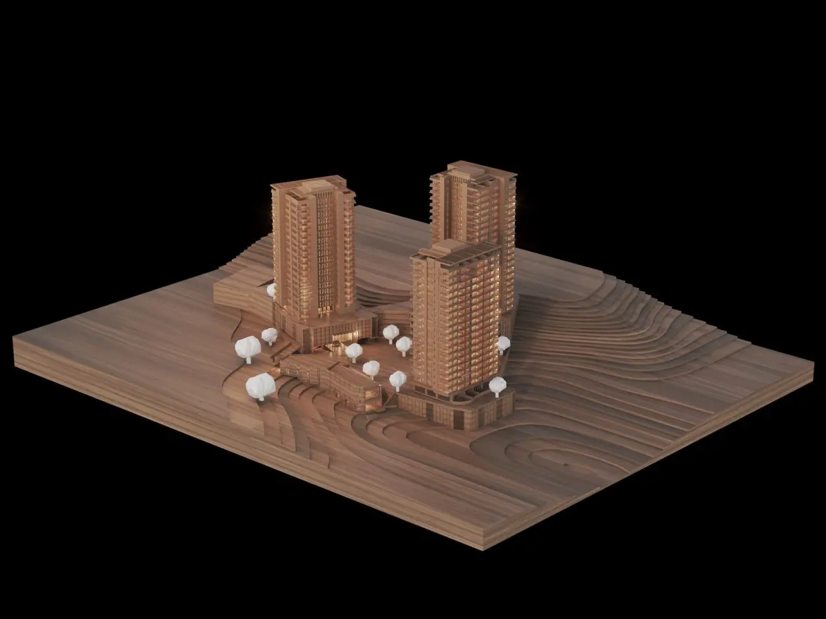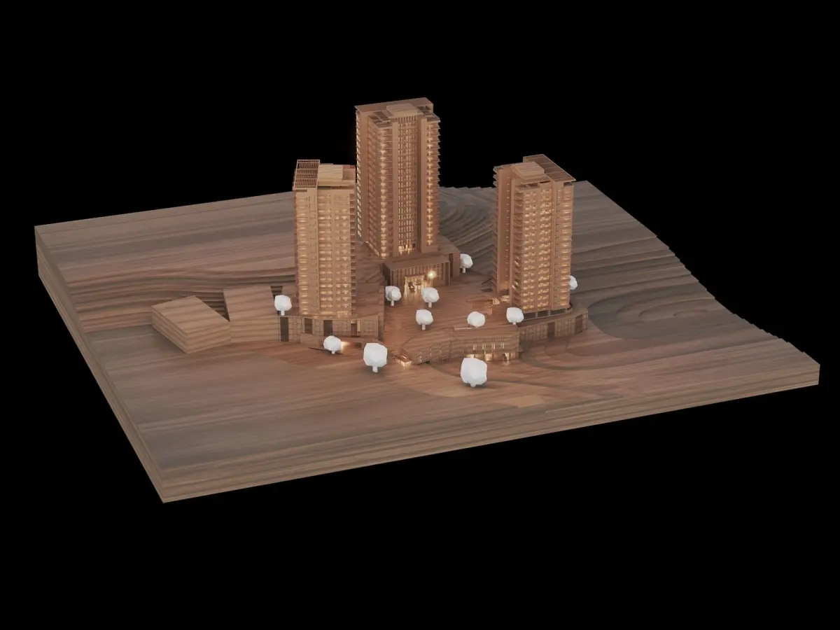 FULL CGI 3DS MAX VRAY 3D model for Archviz. The project is a modern residential building model with a modern design rendered in maquette style. This model contains 3ds Max 2022 and 2019 scenes/cameras/textures ready for render in vray like you see in renders/screenshots, with the same render settings and lighting.