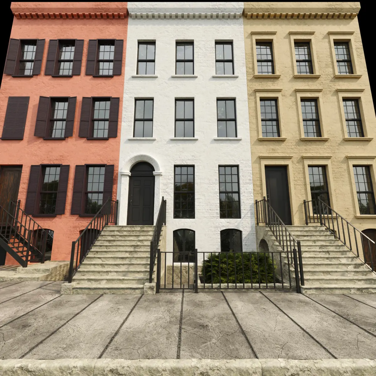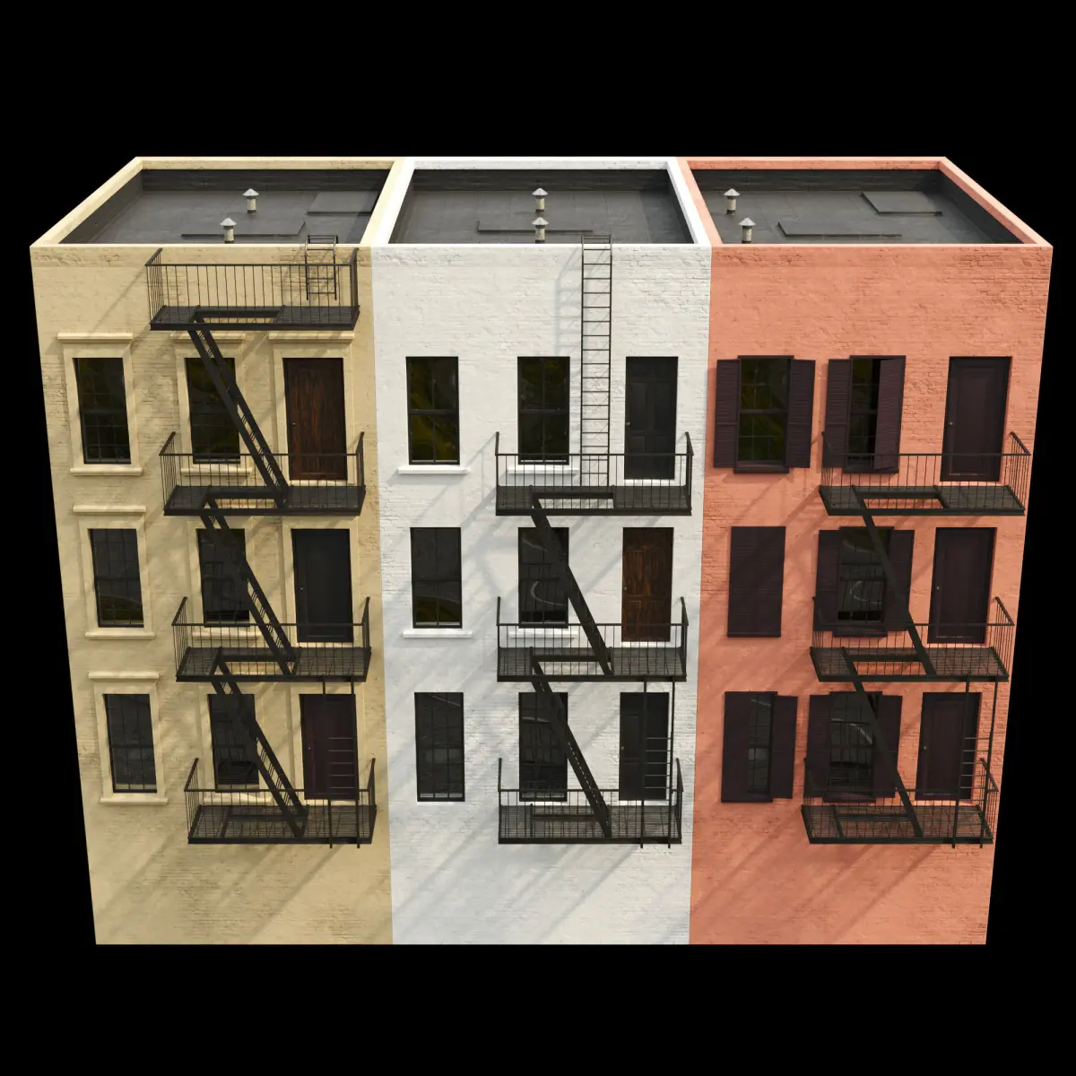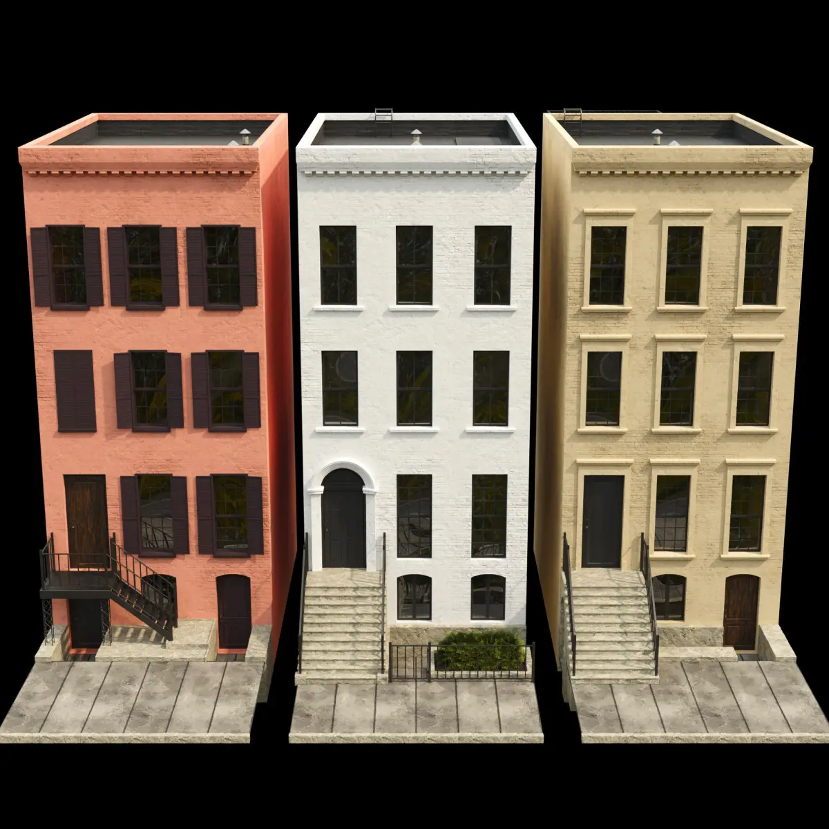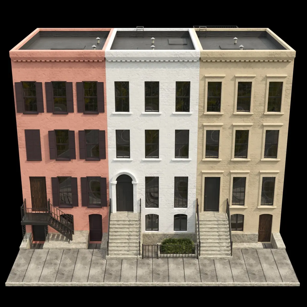 Residential buildings.3 different buildings. Grouped. Can be placed in different variants. Shutters can be turned, pivot point is set.