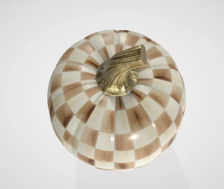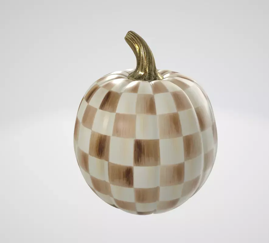 MACKENZIE-CHILDS Mini Pumpkin, Resin Halloween Home Decor, Mocha Brown and White Frame