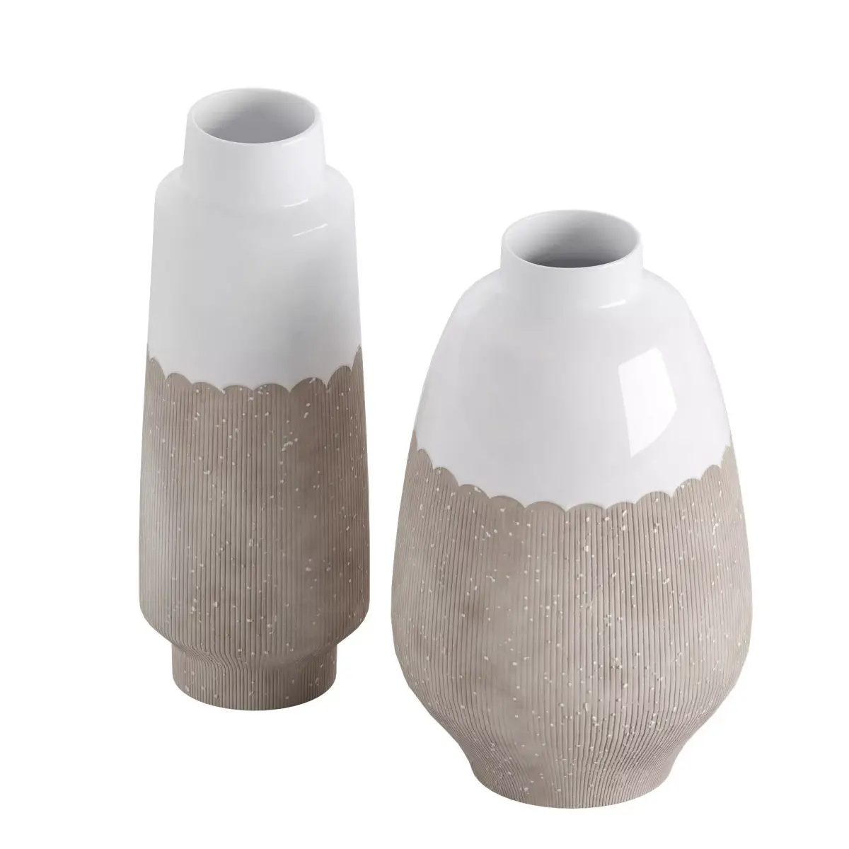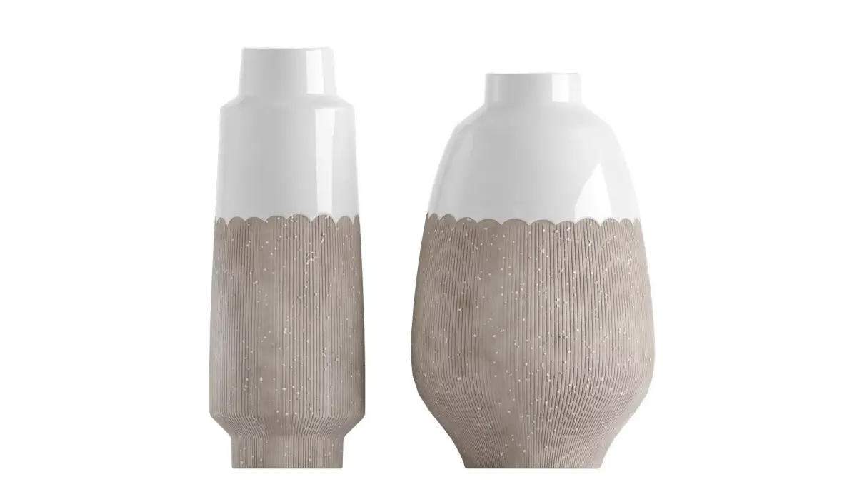 Resist Glaze VaseEmbodying a relaxed coastal style, our ceramic vase is finished with a waterproof glaze process. The pristine white top with its smooth glaze contrasts with the rough, unglazed base, adorned with beautiful glaze speckles. This slender, classic vase is the perfect decorative centerpiece.Type: modelFormat: 3Ds Max 2021Export: FBX, OBJ, 3DSRender: Corona (10,)Polys: 9504Verts: 9508Matclasses: _CoronaPhysicalMtlUnits: CentimetersDimension: 35.91 x 29.32 x 36.5