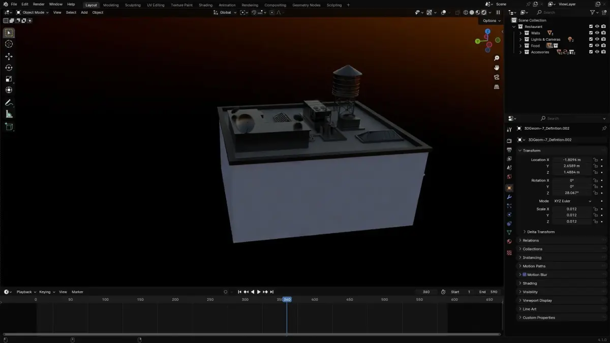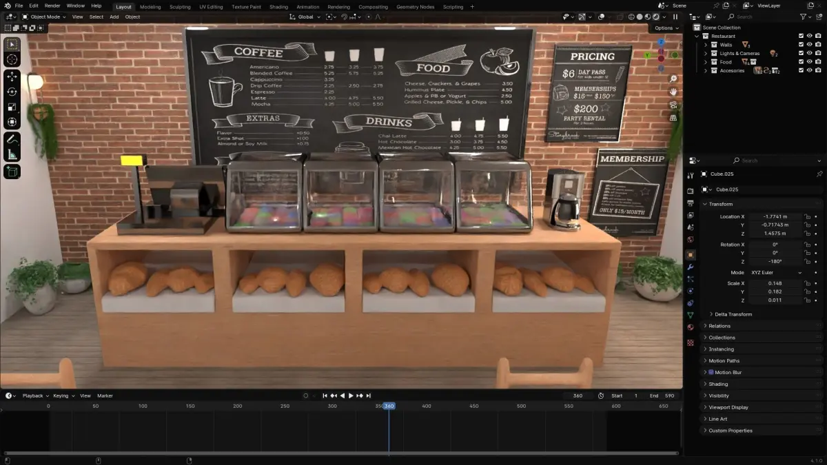 This model consists of a high poly restaurant that I madeI made two animations with this scene.Please watch the youtube preview and download ithope you like it If you want any more models comment below