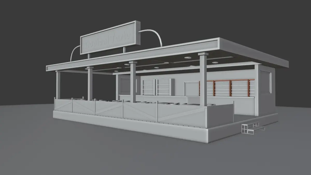 Road side restaurant scene - game ready asset. Compatible with both unity and unreal engine.