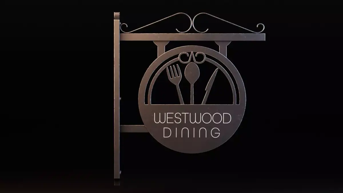 This Restaurant Signboard 3D Model is a high-quality, realistic, and game-ready prop designed with PBR materials for true-to-life detail. The model showcases a stylish metal restaurant sign featuring cut-out silhouettes of a fork, spoon, and knife, along with the engraved text “WESTWOOD DINING.”