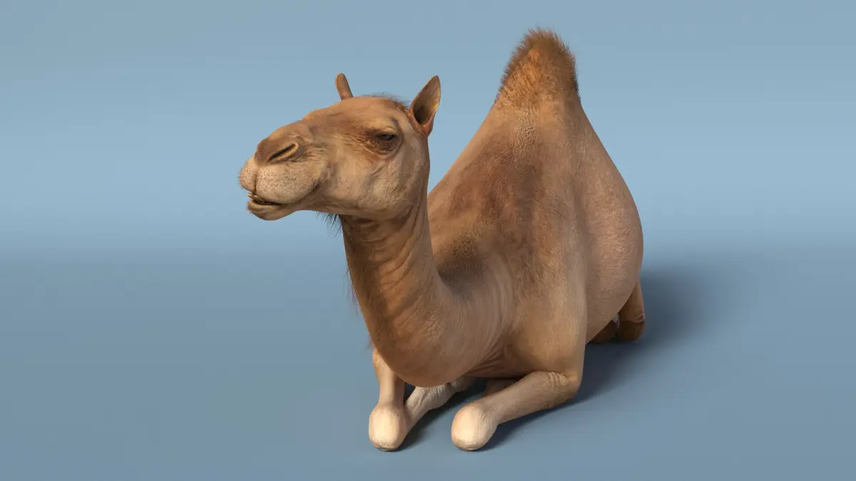 Resting Camel Fur is a three-dimensional model of dromedary (Camelus dromedarius, dromedary camel, Arabian camel or one-humped camel), that is a large camel of the genus Camelus with one hump on its back.