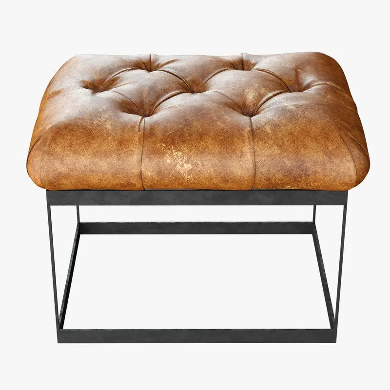 Restoration Hardware/22' Tufted Leather & Metal Bench