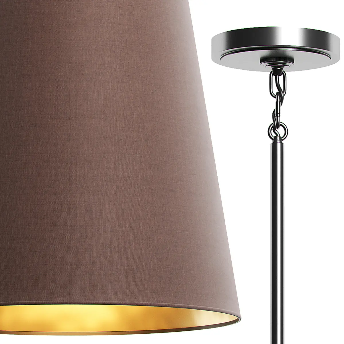 RESTORATION HARDWARE CICERO BARREL PENDANT Grey Linen.Swathed in linen, our subtly tapered barrel pendant makes a striking statement overhead with a radiant gold interior to enhance its elegant impact.