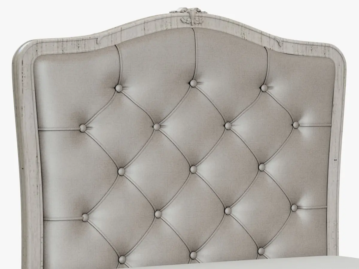 Sweetly sophisticated, our tufted linen headboard exhibits all the hallmarks of the Louis XV antique we were inspired by, with its classic curves and detailed carvings.