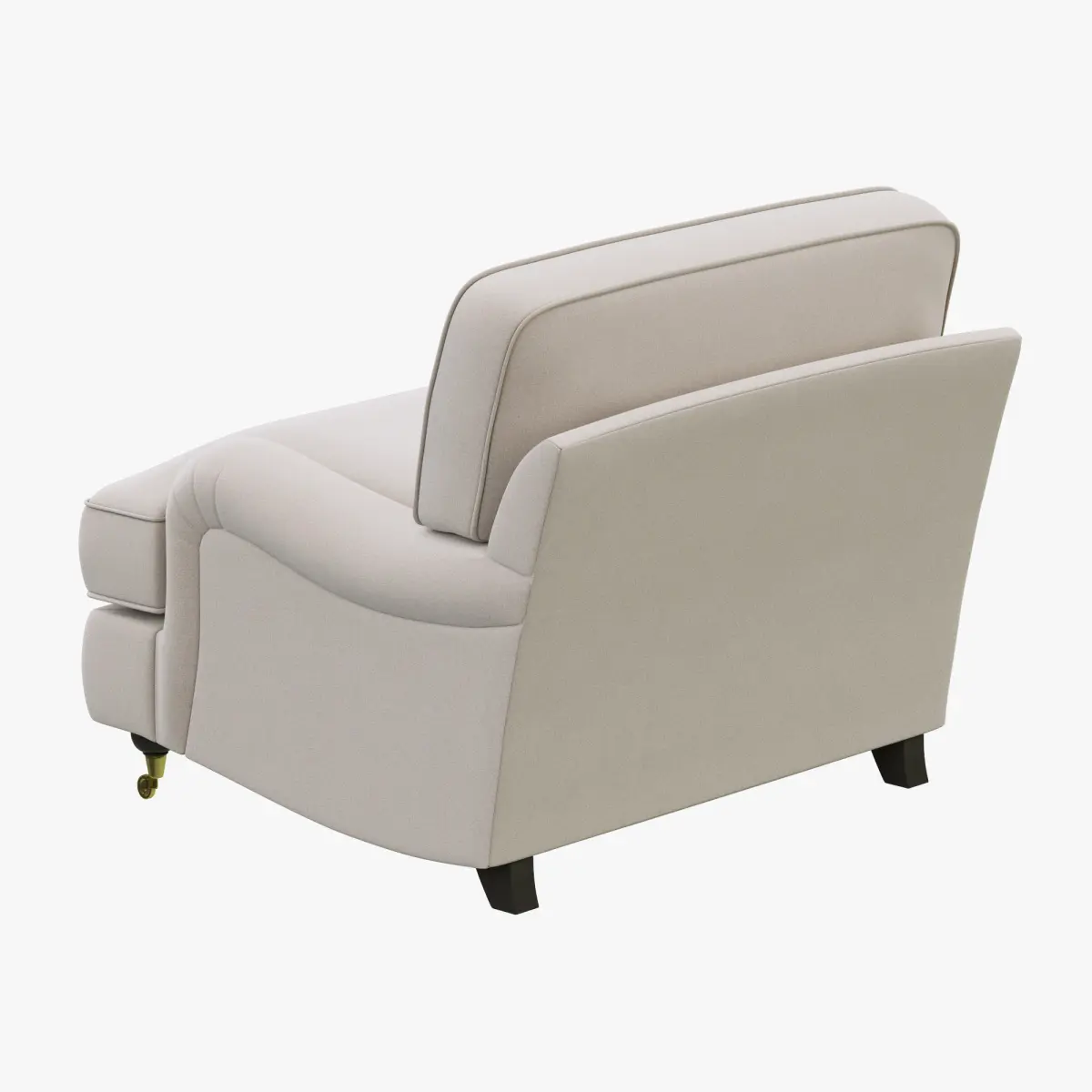 Setback rounded English arms and large loose cushions on the angled back give English Roll Arm a relaxed feel.