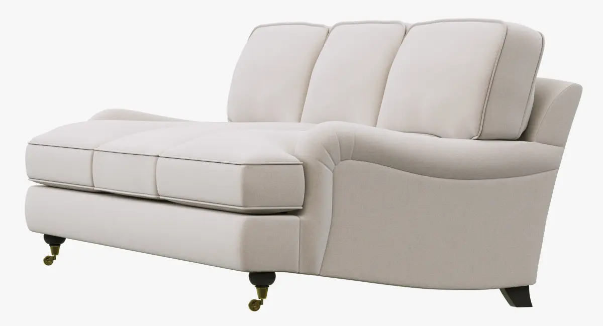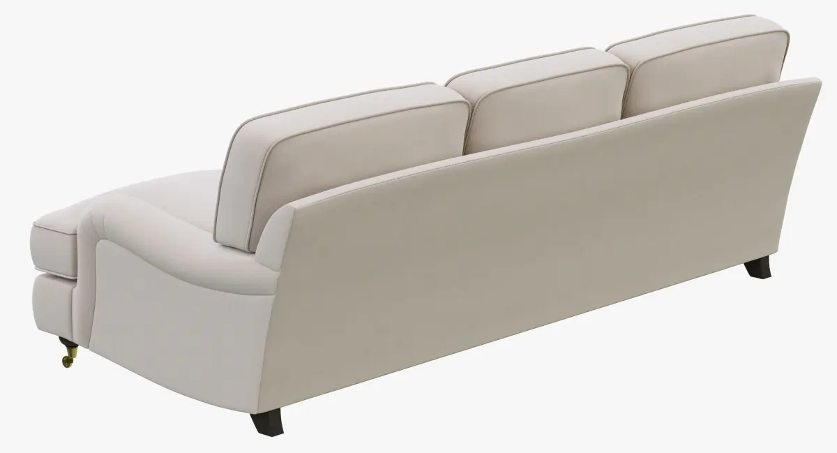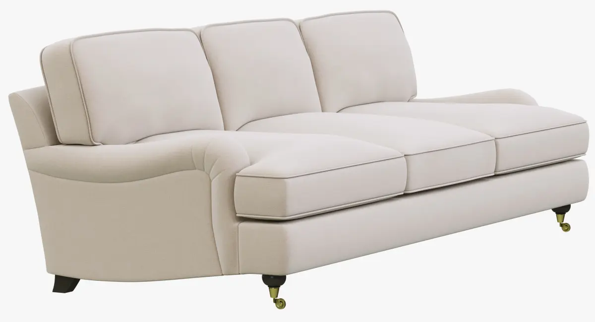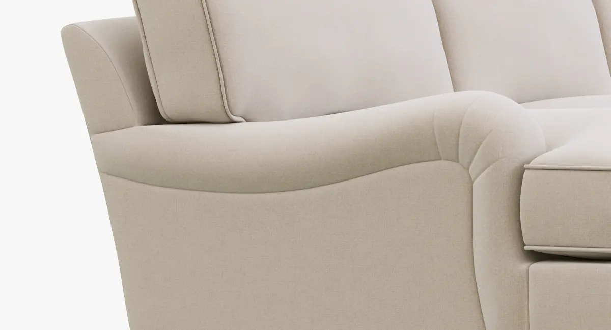 Setback rounded English arms and large loose cushions on the angled back give English Roll Arm a relaxed feel.
