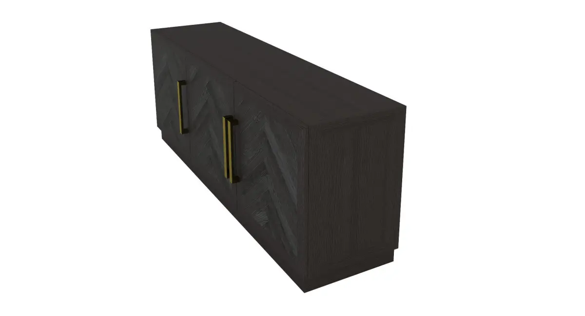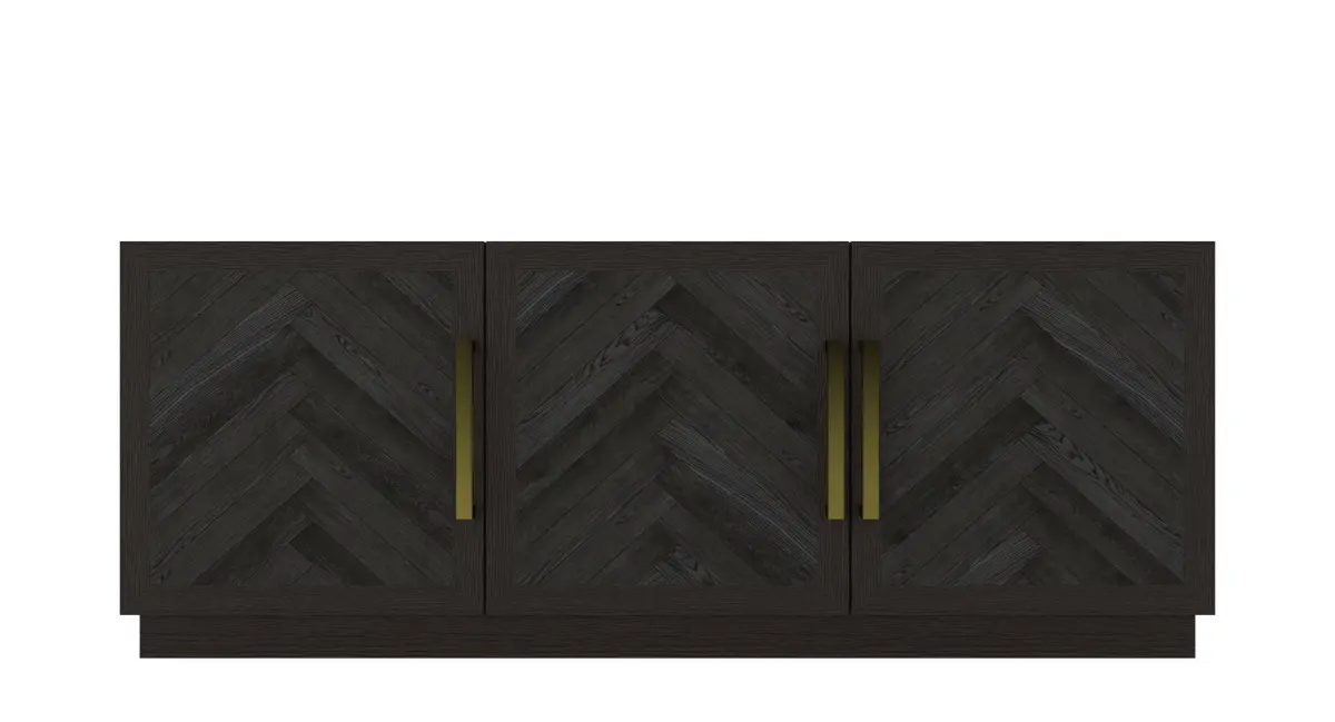 3 Door Cabinet with Weathered Brown Oak Wood Finish, Herringbone pattern on Door panels