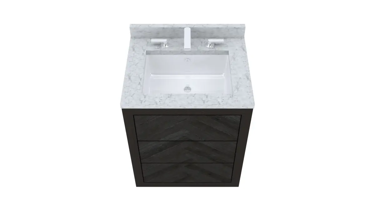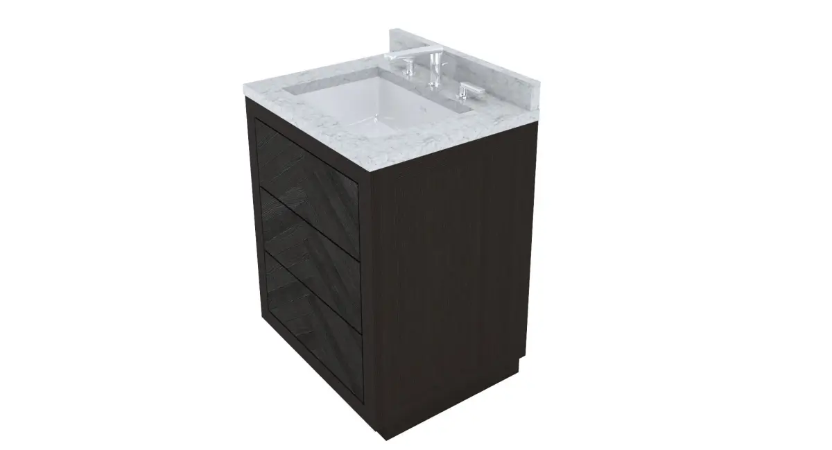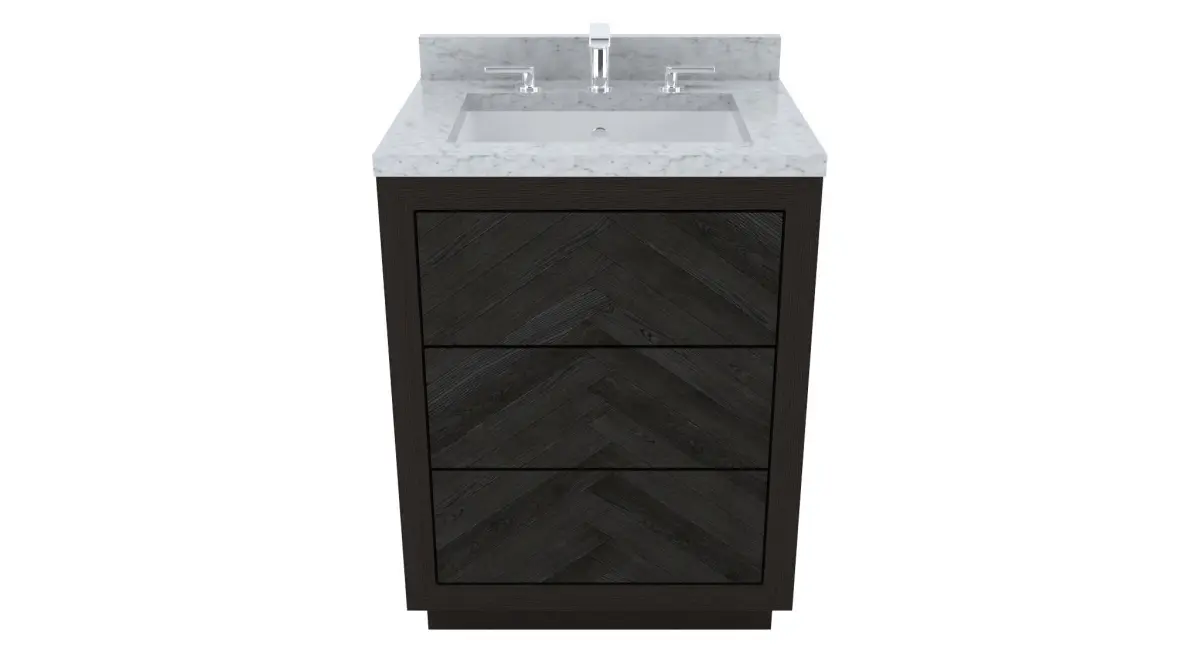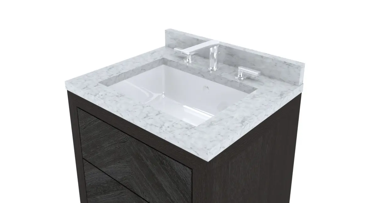 Restoration Hardware Herringbone Vanity Cabinet With Carrara Marble Counter & Kohler Faucet